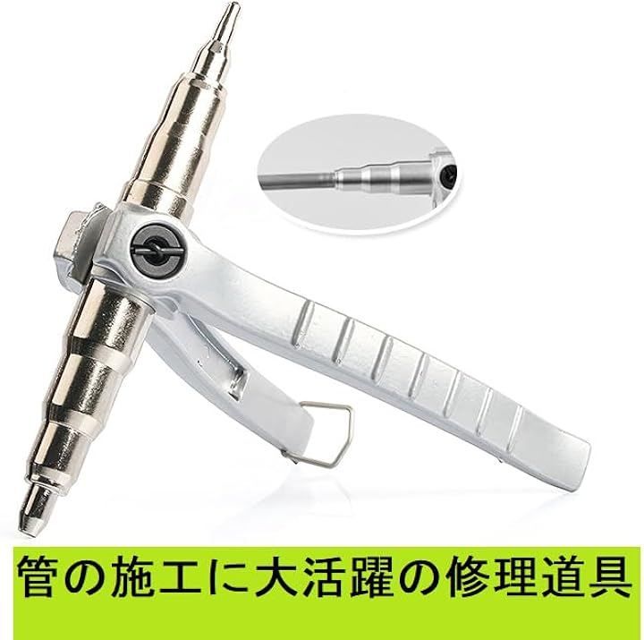 「広範囲な用途に対応」このチューブエキスパンダーは、銅パイプだけでなく、塩ビ管、アルミパイプ、ゴムホースなど幅広い材質の管材の拡張作業に適しており、冷蔵庫やエアコン、冷凍庫といった家庭用冷却機器から、業務用冷凍設備のメンテナンスまで、多種多様な環境での使用が可能です。
