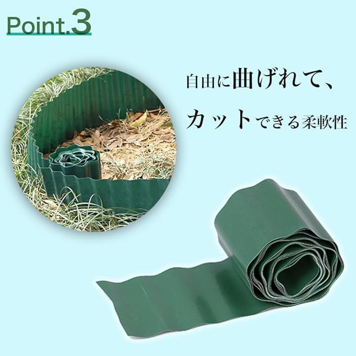 「自由自在にカット」素材は柔らかく好きな形にしたり、ハサミやカッターで好きな長さにカットして調整することができ自分好みの花壇作り、家庭菜園、ガーデニングを楽しむことができます。