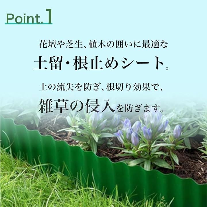 「綺麗な花壇に最適」ガーデンエッジは花壇や菜園やプランターへの芝の根や土砂侵入を防止する効果があります。
