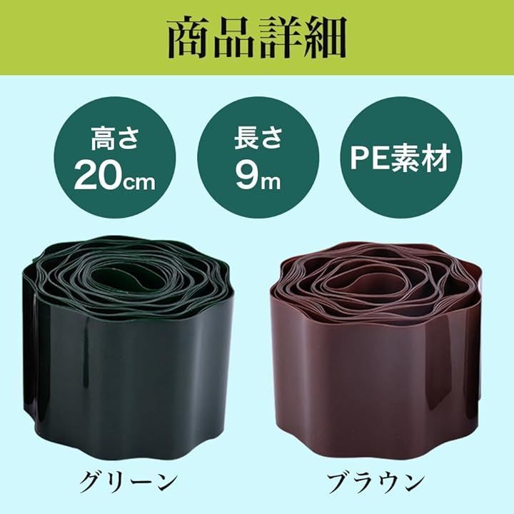 「商品詳細」カラー:グリーン サイズ:高さ20cmx長さ9m 材質:ポリエチレン