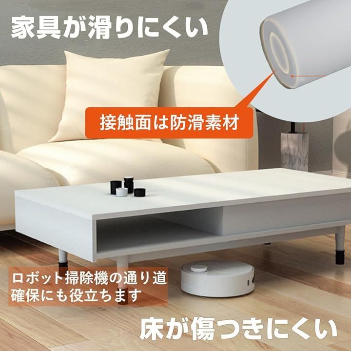 「回転式で高さ調節可能」ソファ、コーヒーテーブル、テーブル、ベッド、その他様々な家具の脚に使用して高さを調節する事ができます。