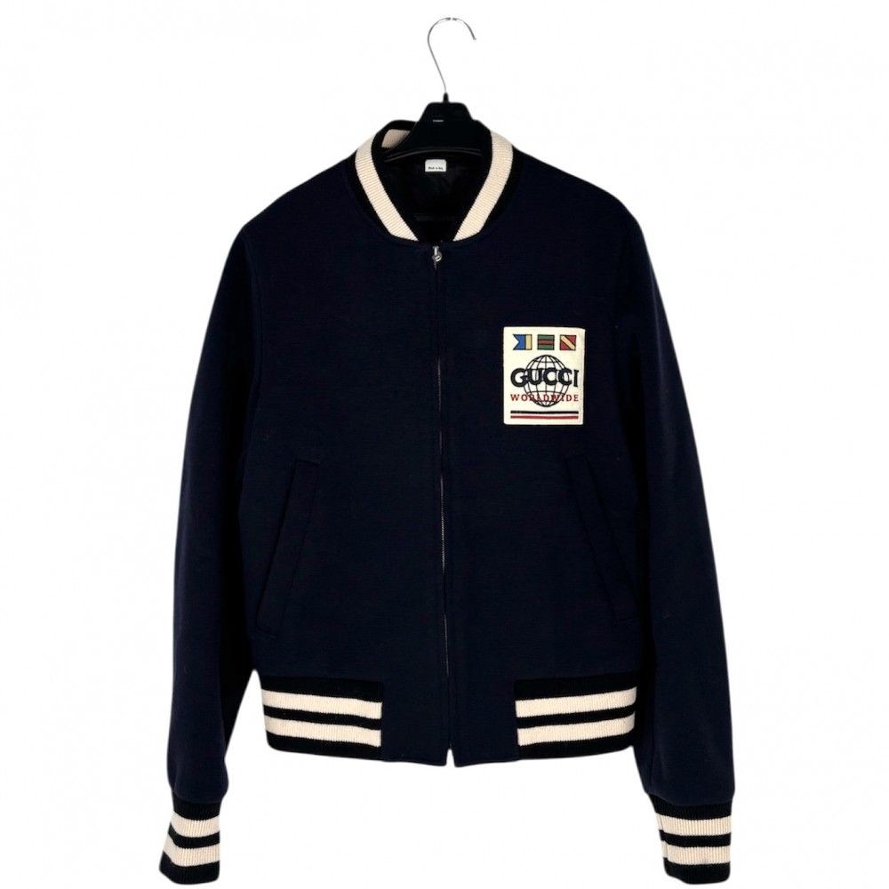 【商品名】GUCCI グッチ ブルゾン スタジャン ジャケット 服 アウター 770283 ウール ナイロン ネイビー シルバー メンズ【中古品】