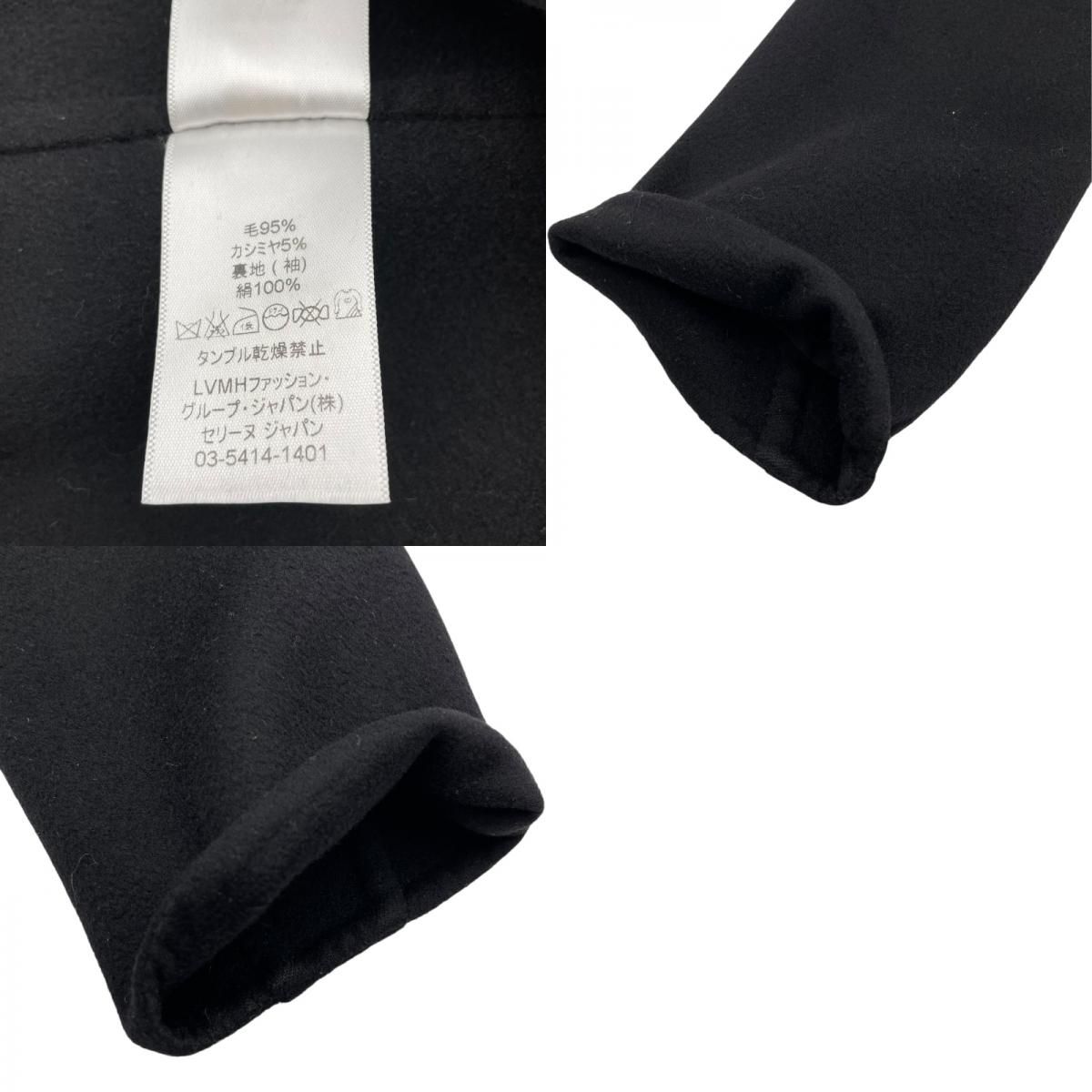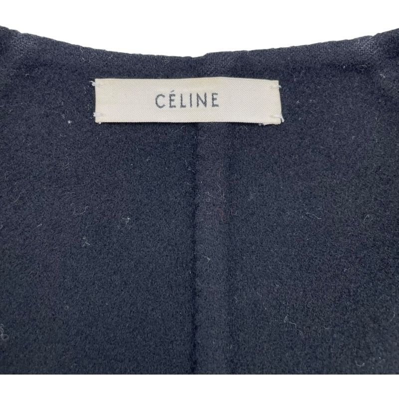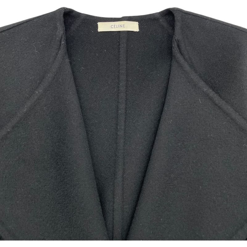 セリーヌ CELINE カシミヤ混ノーカラーコート ブラック 毛 レディース その他アウター