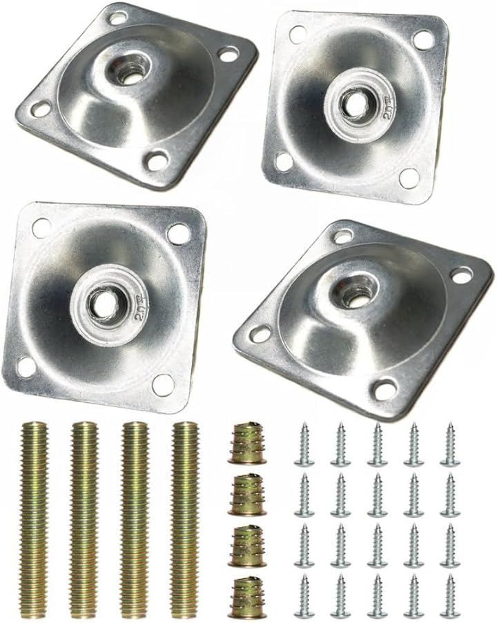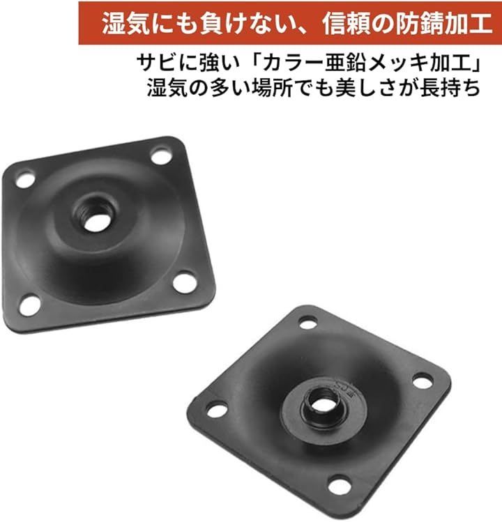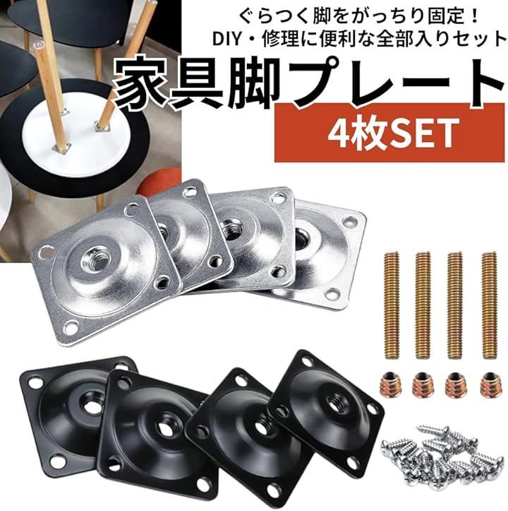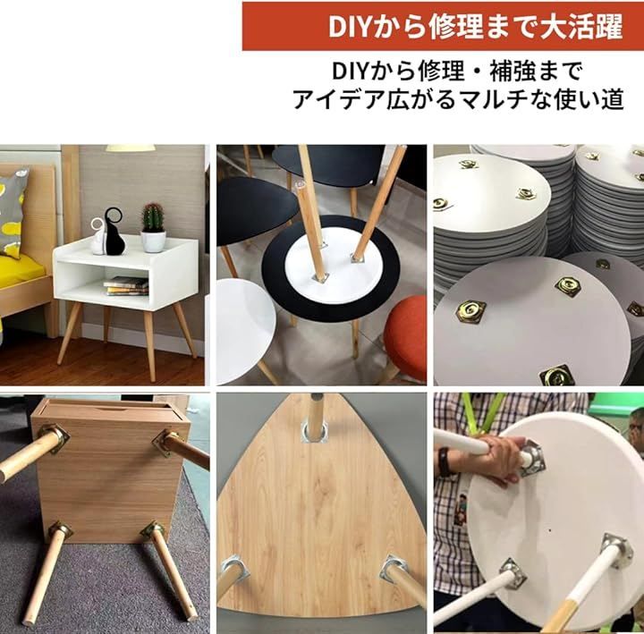 「DIYから修理まで大活躍」テーブルやソファなど、様々な木製家具の脚を取り付けるためのマウントプレート4個セットです。