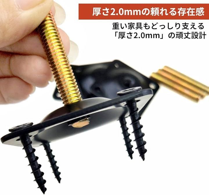 「重い家具もがっちり固定」重い天板やソファの荷重にも耐える、厚さ2.0mmの金属プレートを採用。