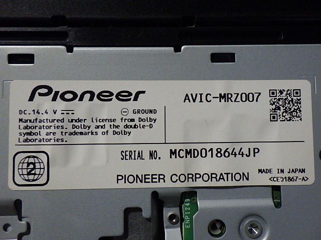 カロッツェリア AVIC-MRZ007 メモリ 4×4地デジ内蔵ナビになります。