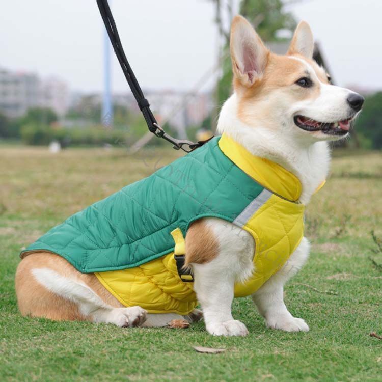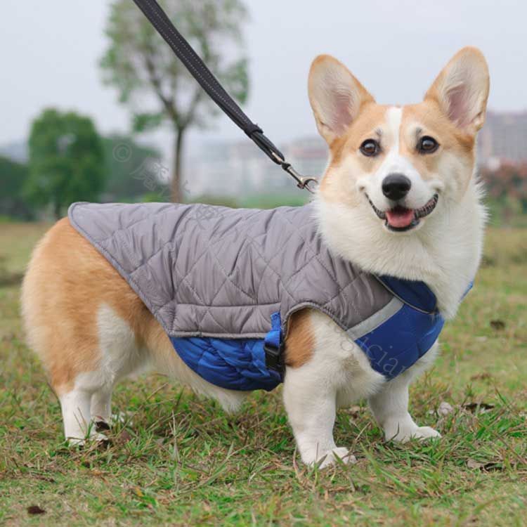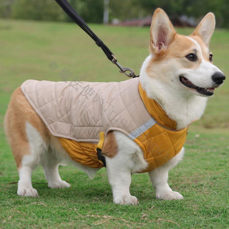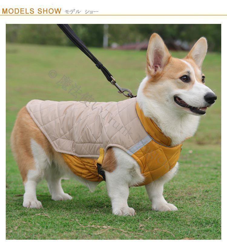 ふわふわ、中綿入り、軽くて暖かくい、寒い冬の防寒対策として、お散歩や出かけ際に最適なドッグジャケットです。