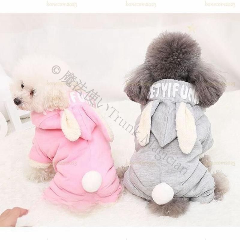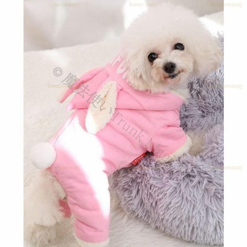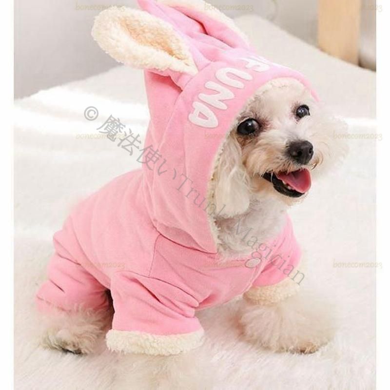 うさ耳としっぽがとってもキュートな裏ボアあったかペットウェアです。