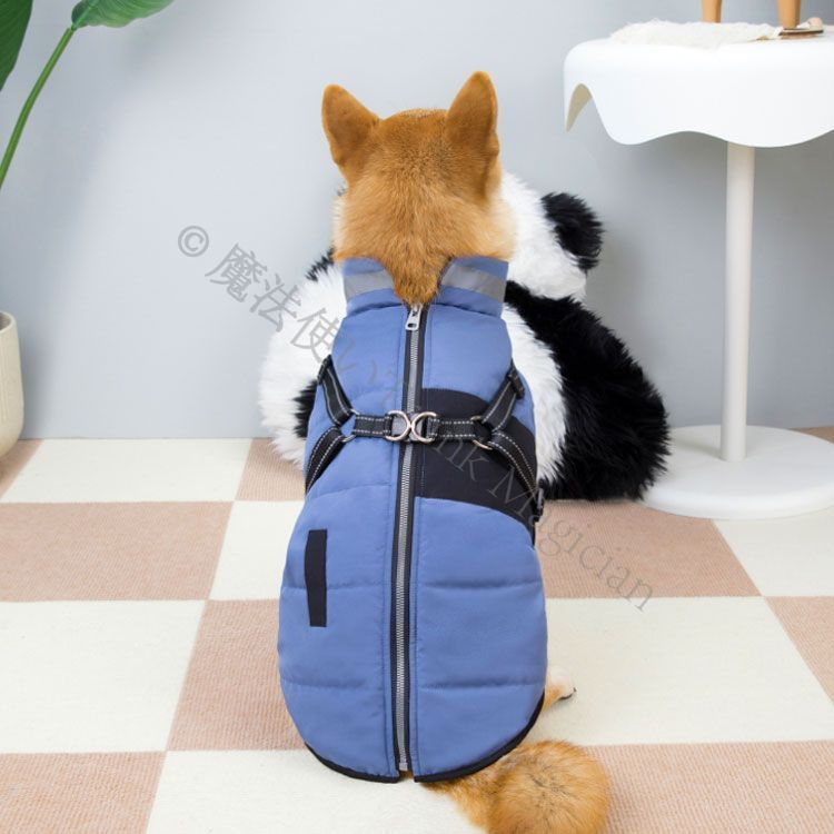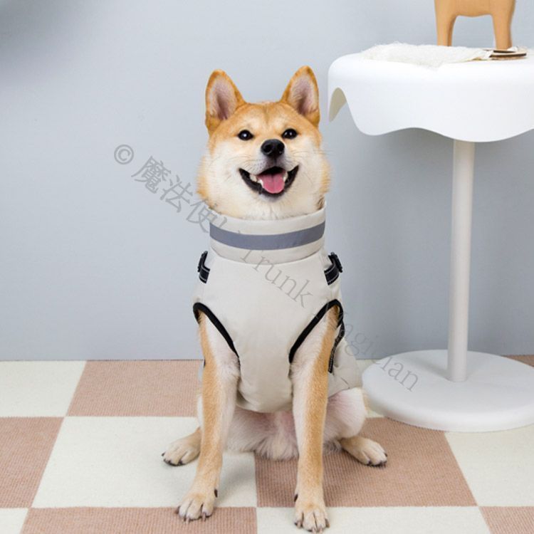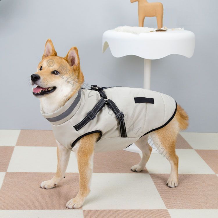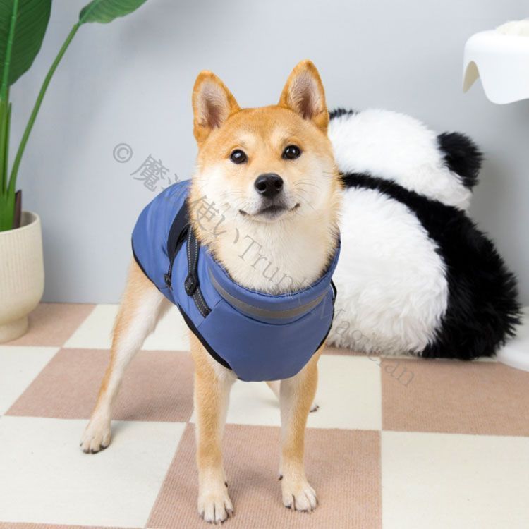 オシャレしながら防寒できる犬用ダウン風ジャケット。