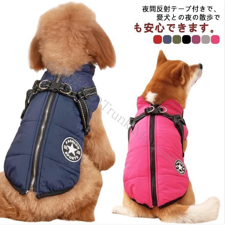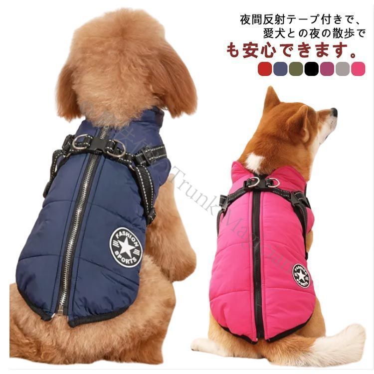 夜間反射テープ付きで、愛犬との夜の散歩でも安心できます。
