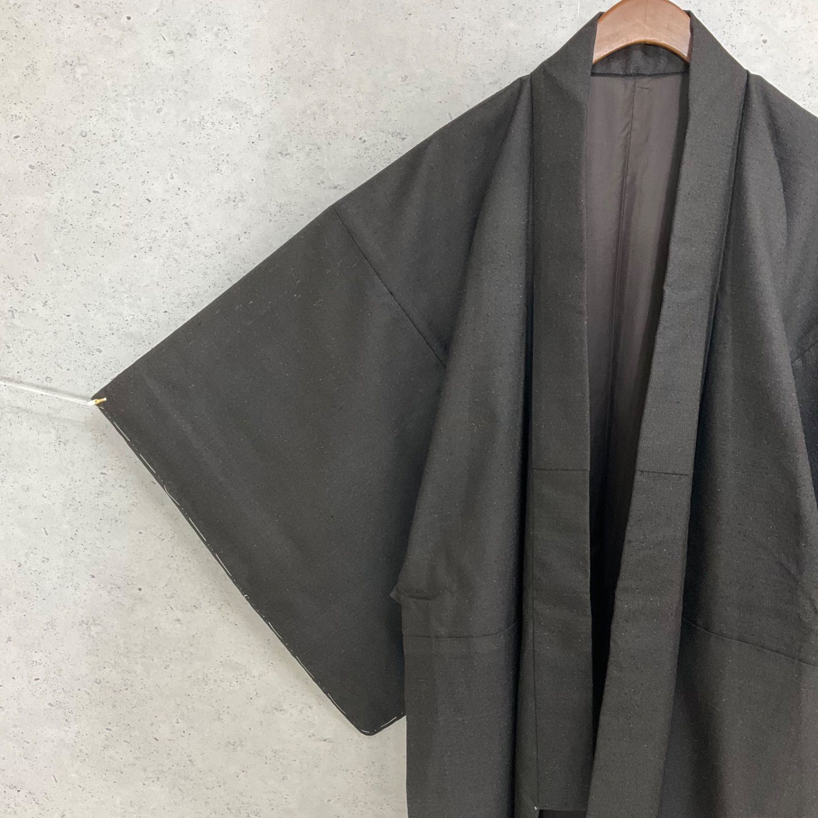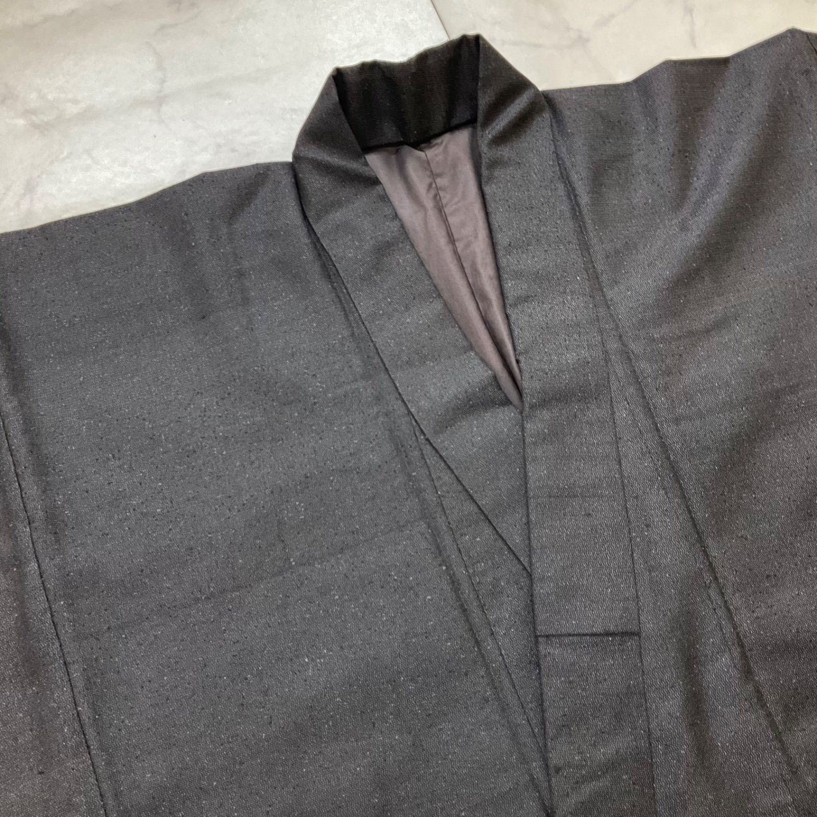 kimono+one⬛️男前屋⬛️未使用同然⬛️男着物⬛️お召し織⬛️仕付け糸付き⬛️袷⬛️裄68丈140.5⬛️男着物男長羽織男襦袢男袴角帯男帯