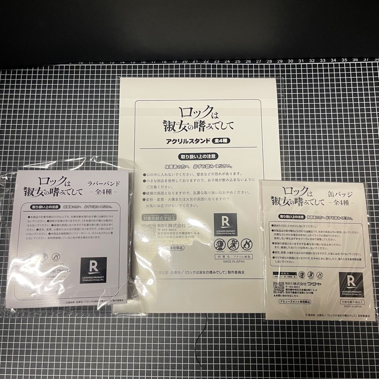 白矢環のアクリルスタンド・ラバーバンド・缶バッヂ