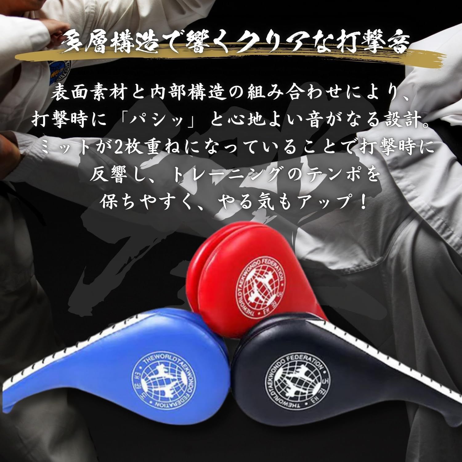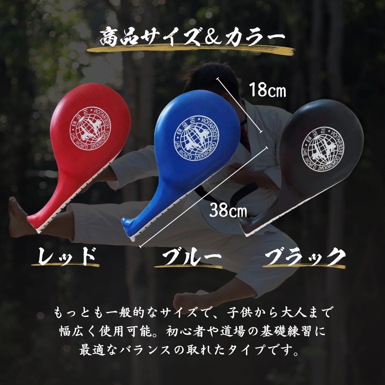 【格闘技全般に対応】 空手・テコンドー・キックボクシング・ムエタイなど、さまざまな格闘技に対応可能。初心者から上級者まで活用できます。