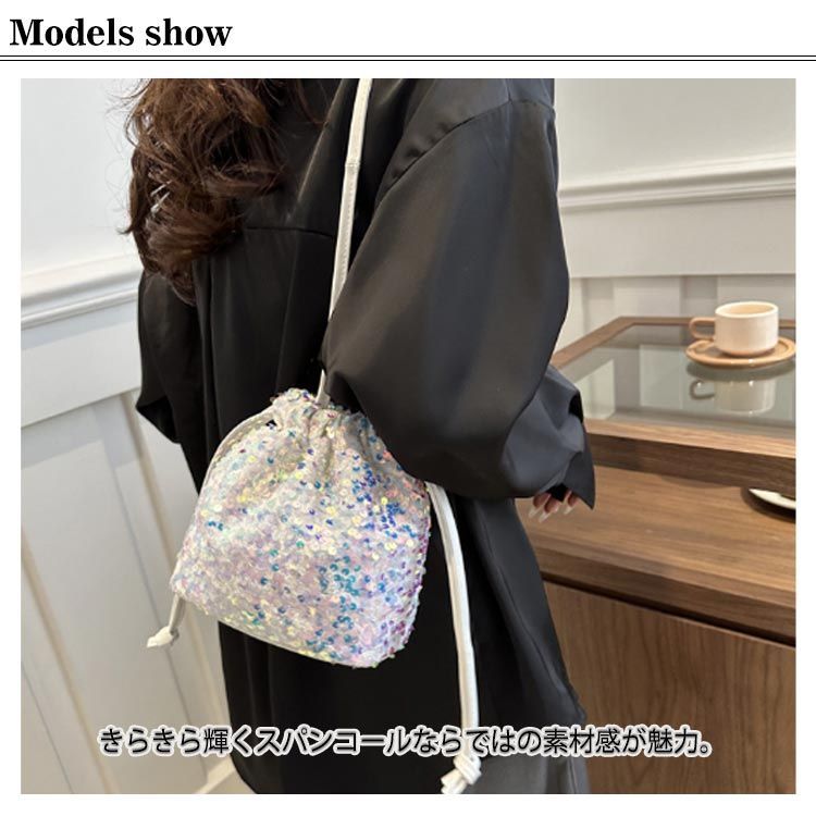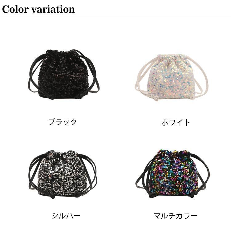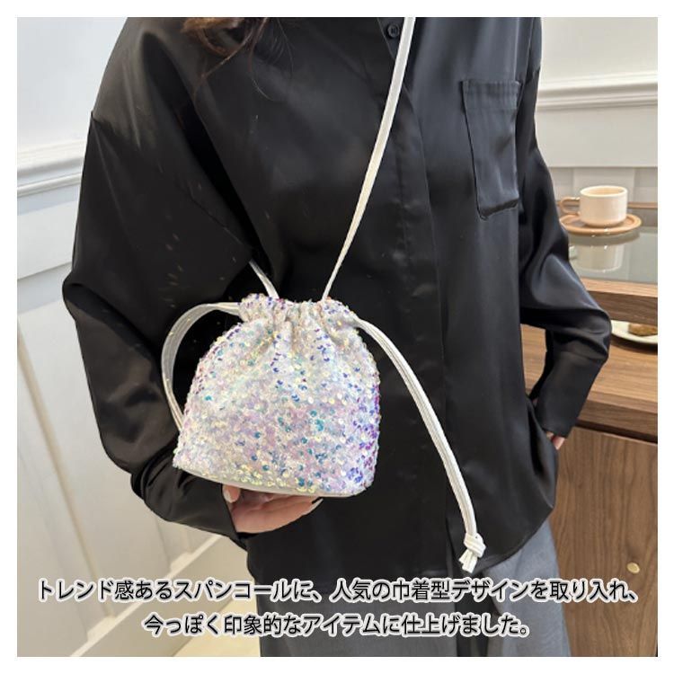 トレンド感あるスパンコールに、人気の巾着型デザインを取り入れ、今っぽく印象的なアイテムに仕上げました。