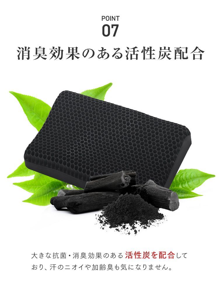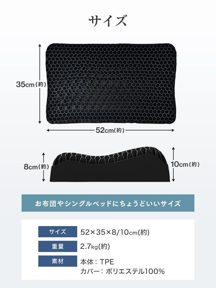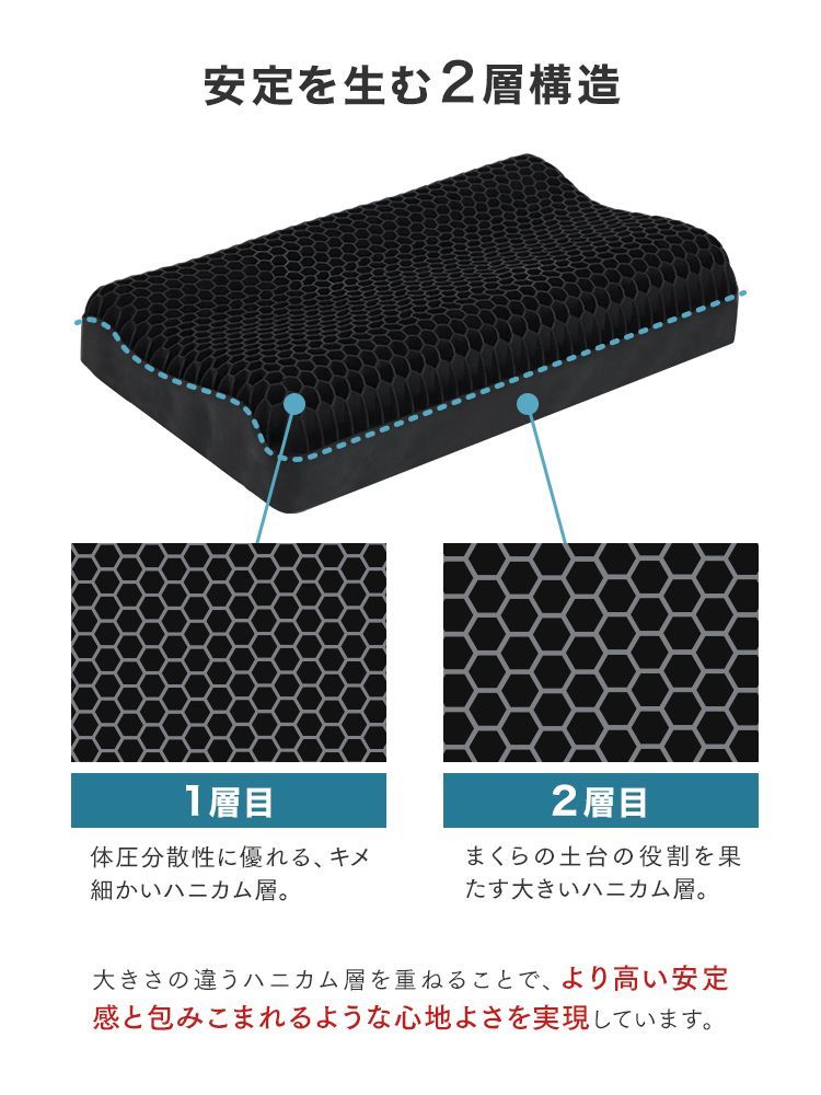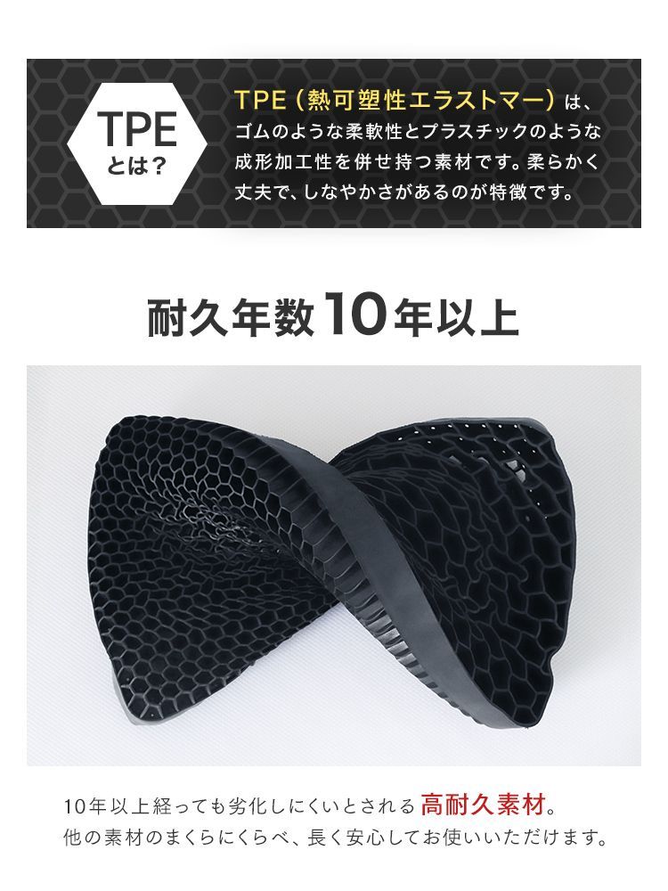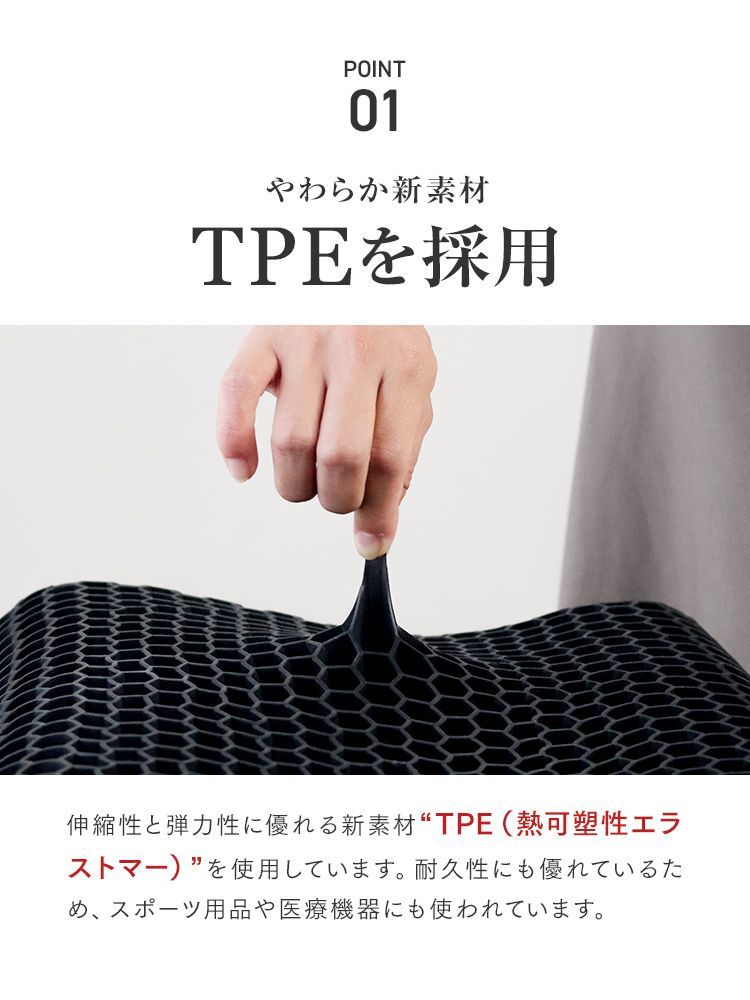 柔らかなTPE素材とハニカム構造により“多くの点”で支え、広範囲の圧力分散効果を実現。