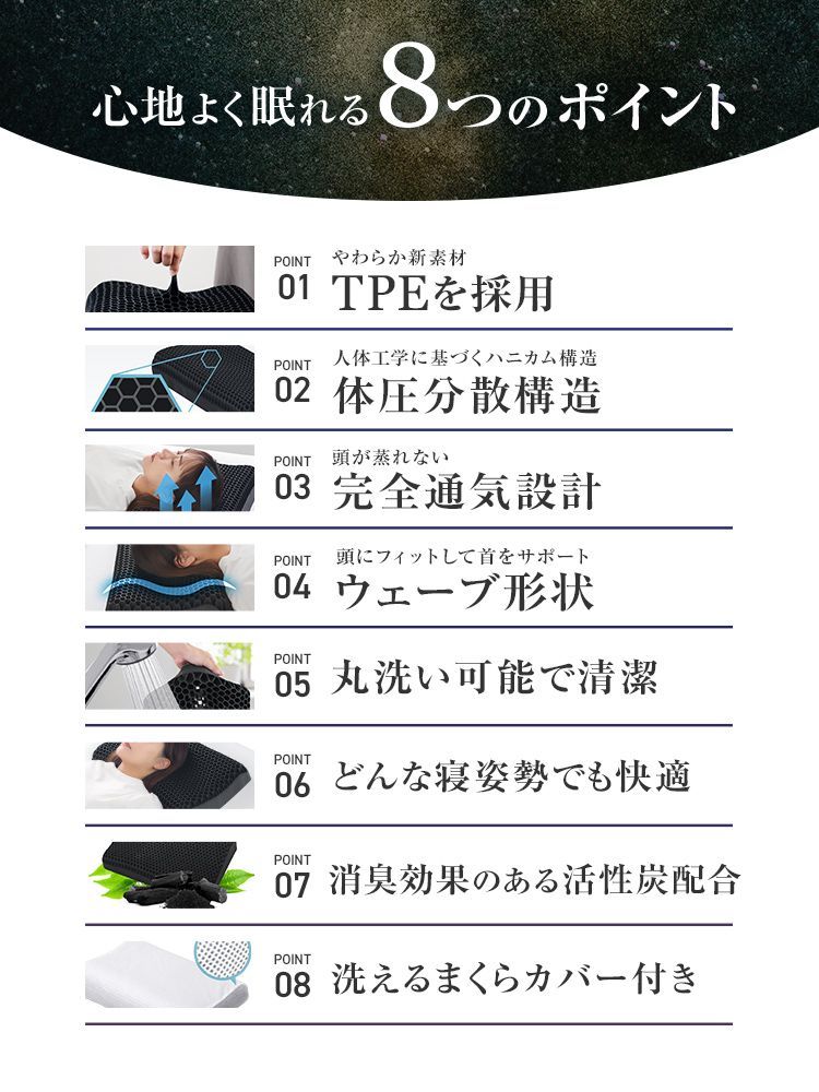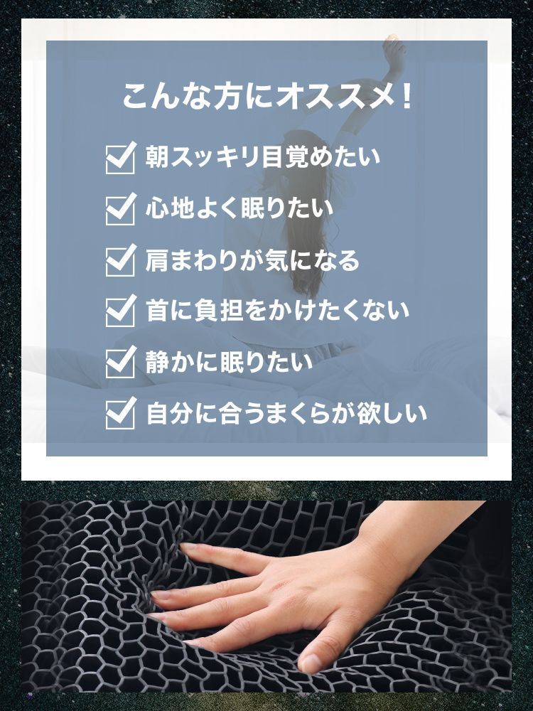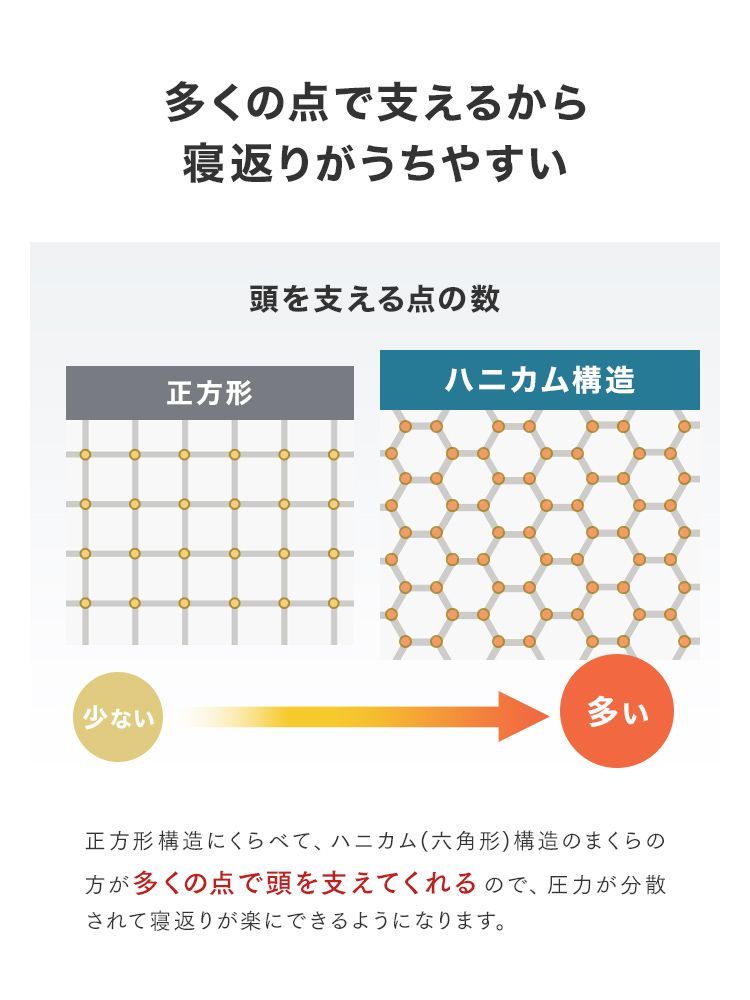 首・肩への負担を軽減し、寝返りもしやすく快適な目覚めをサポートします。