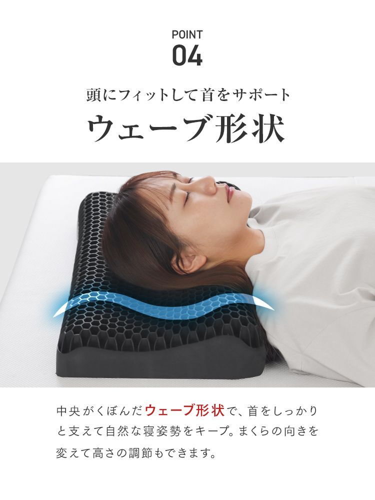 中央がくぼんだウェーブ形状が、首をしっかりと支え、自然な寝姿勢をキープ!