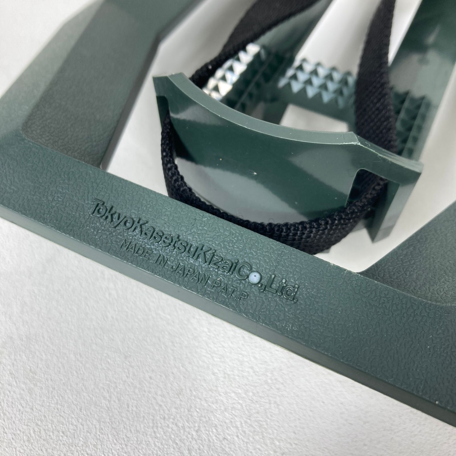 高性能耐衝撃性ナイロン合成樹脂を使っているため、吸水性はもちろんのこと着雪性も0%、滑り止めツメの部分は2mmのステンレススパイクを7本装備し、10mm厚の氷板も8kgの加重で破壊します。横幅もわずか19cmのため歩行中に左右の足がぶつかることもなく、従来のカンジキに比べて非常に歩きやすくなっています。