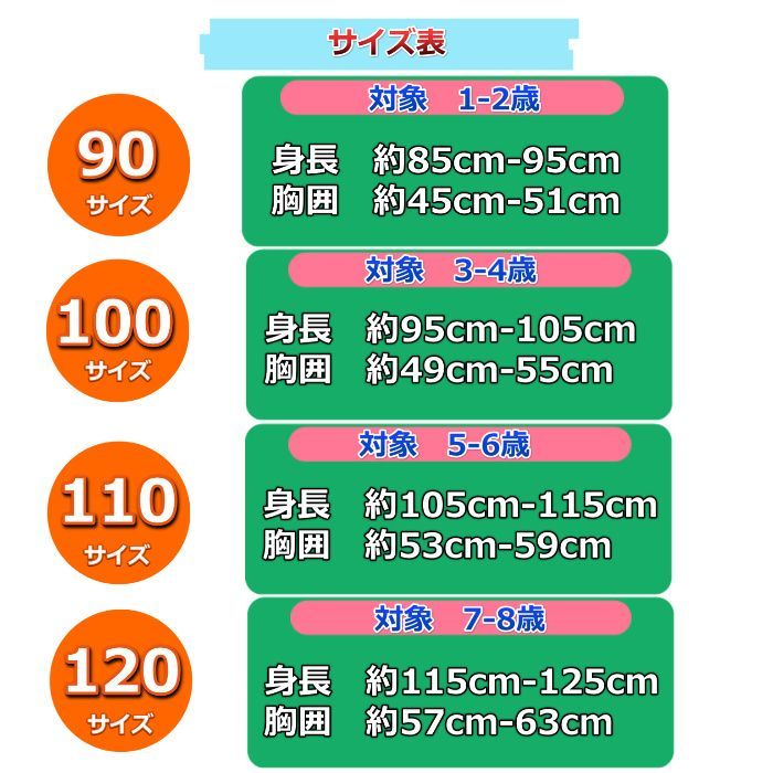 【110サイズ(対象5-6歳)】身長約105-115cm、胸囲約53-59cm