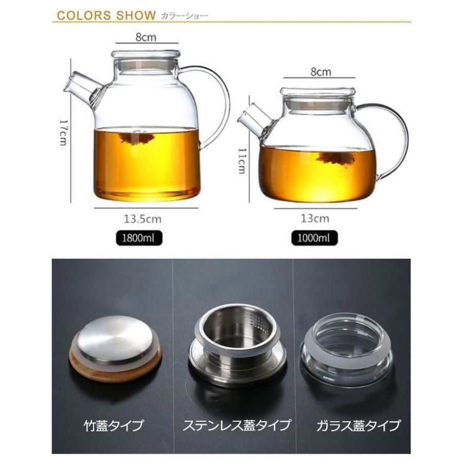 耐熱ガラスポット 1000ml やかん 耐熱ガラス ティーポット 1800ml 耐熱 ガラスポット ガラスケトル ホウケイ酸