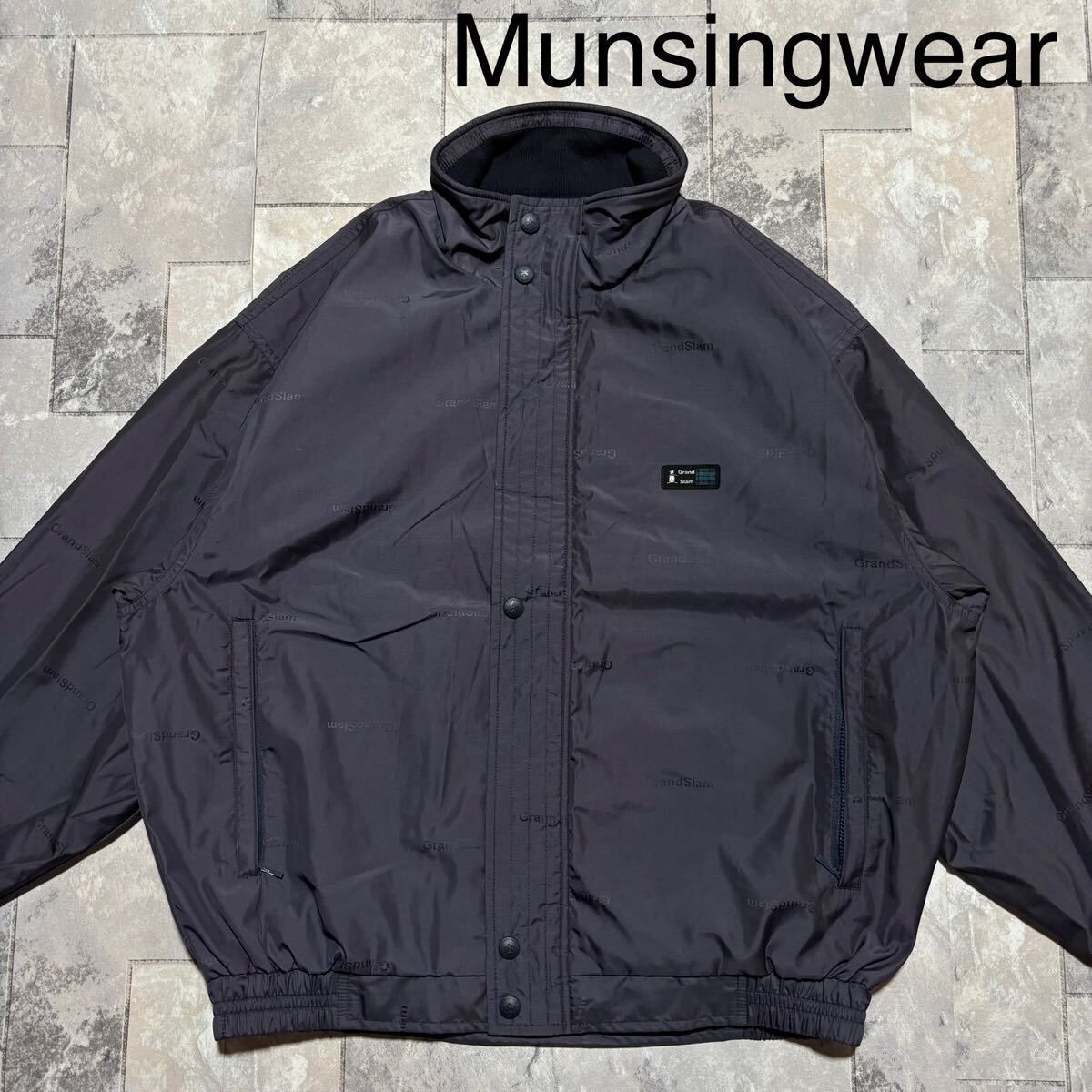 Munsingwear マンシングウェア Glandslam グランドスラム ナイロンジャケット Golf ゴルフ ジップ ジャンパー ネイビー サイズM 玉FS1762