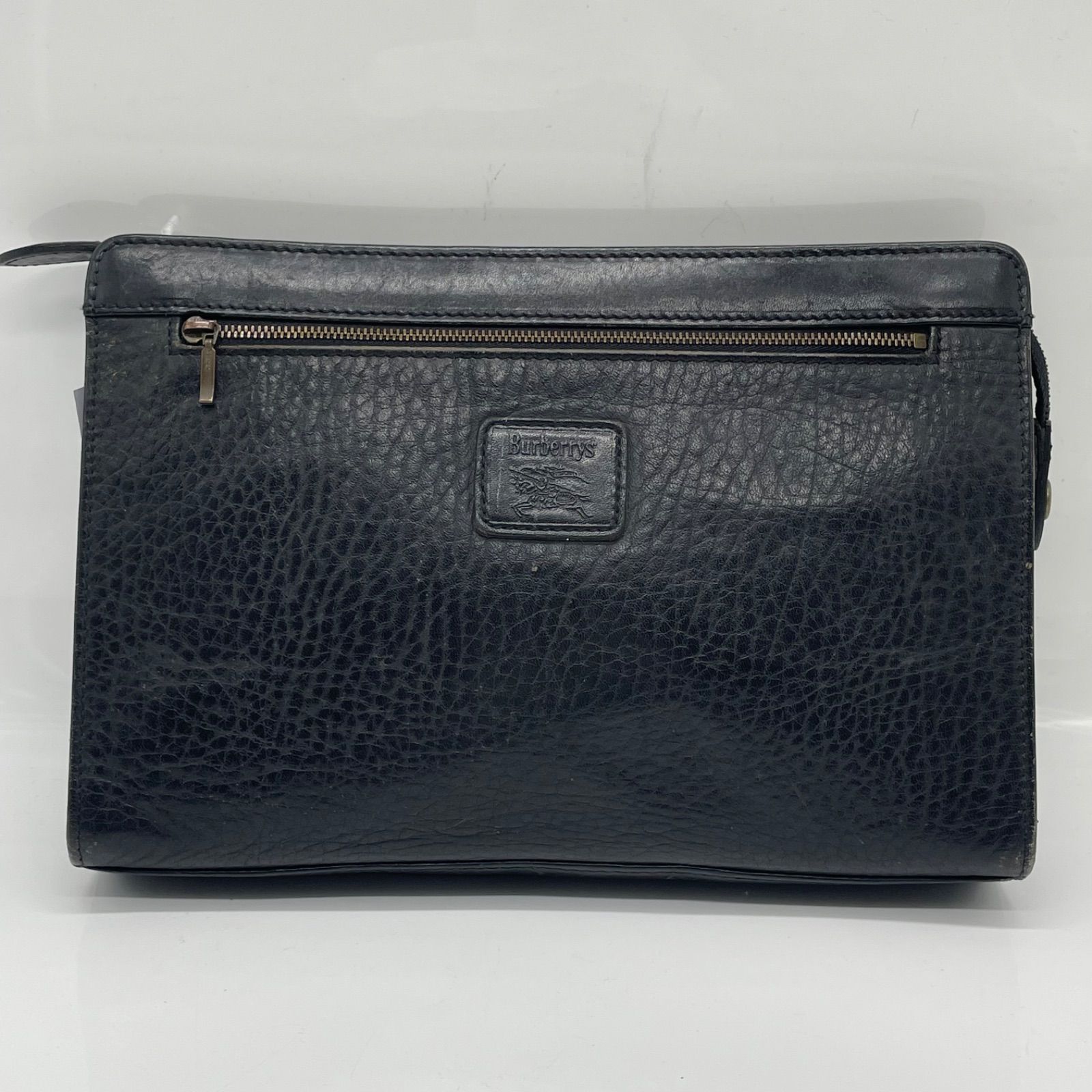 BN6918●BURBERRY バーバリー クラッチバッグ セカンドバッグ ホースロゴ レザー ブラック ヴィンテージ