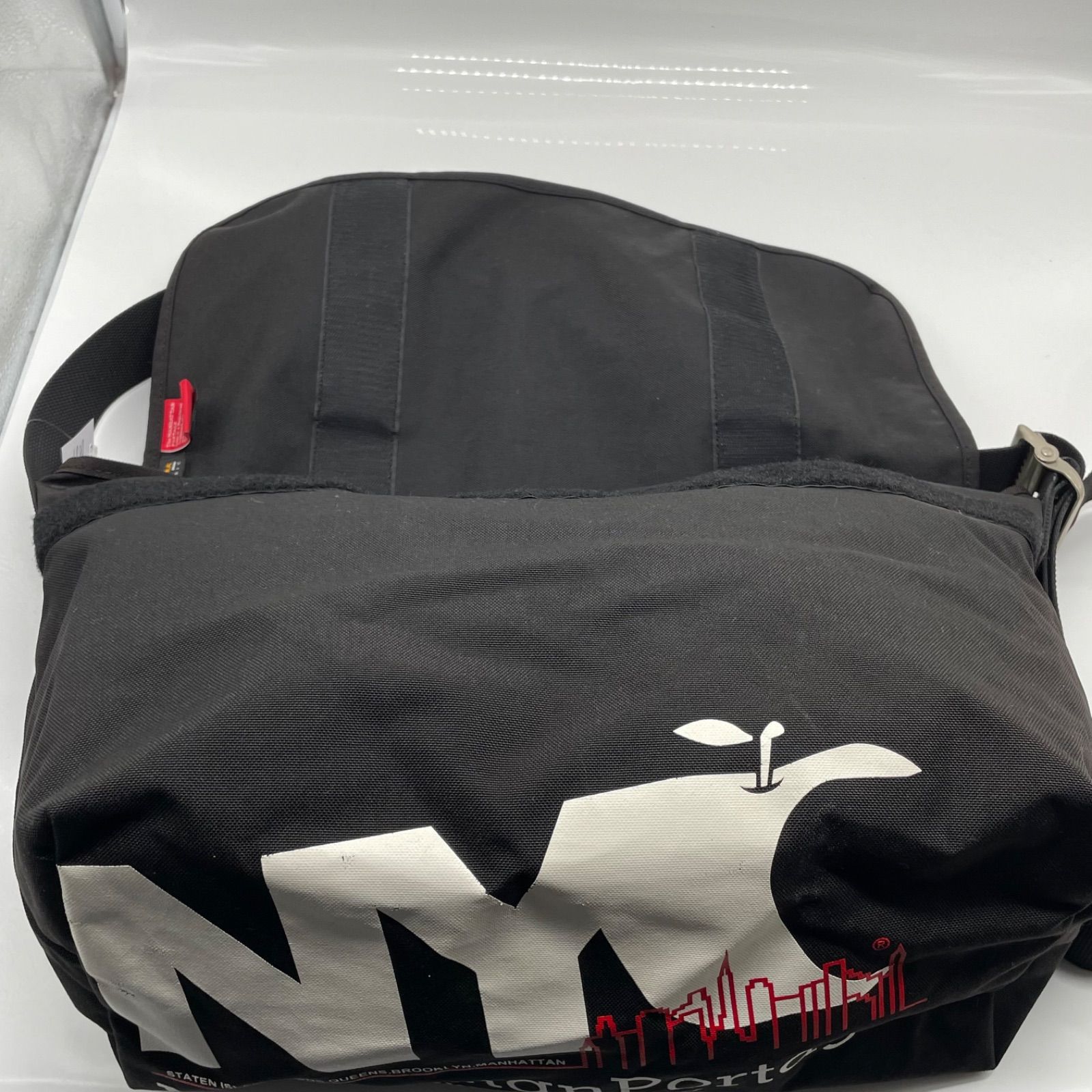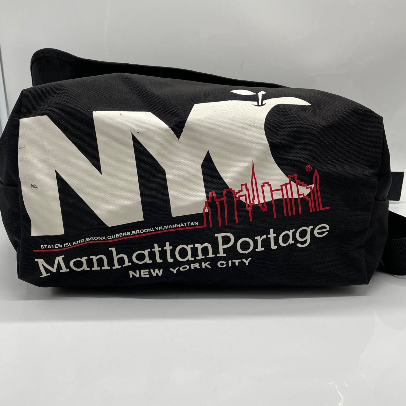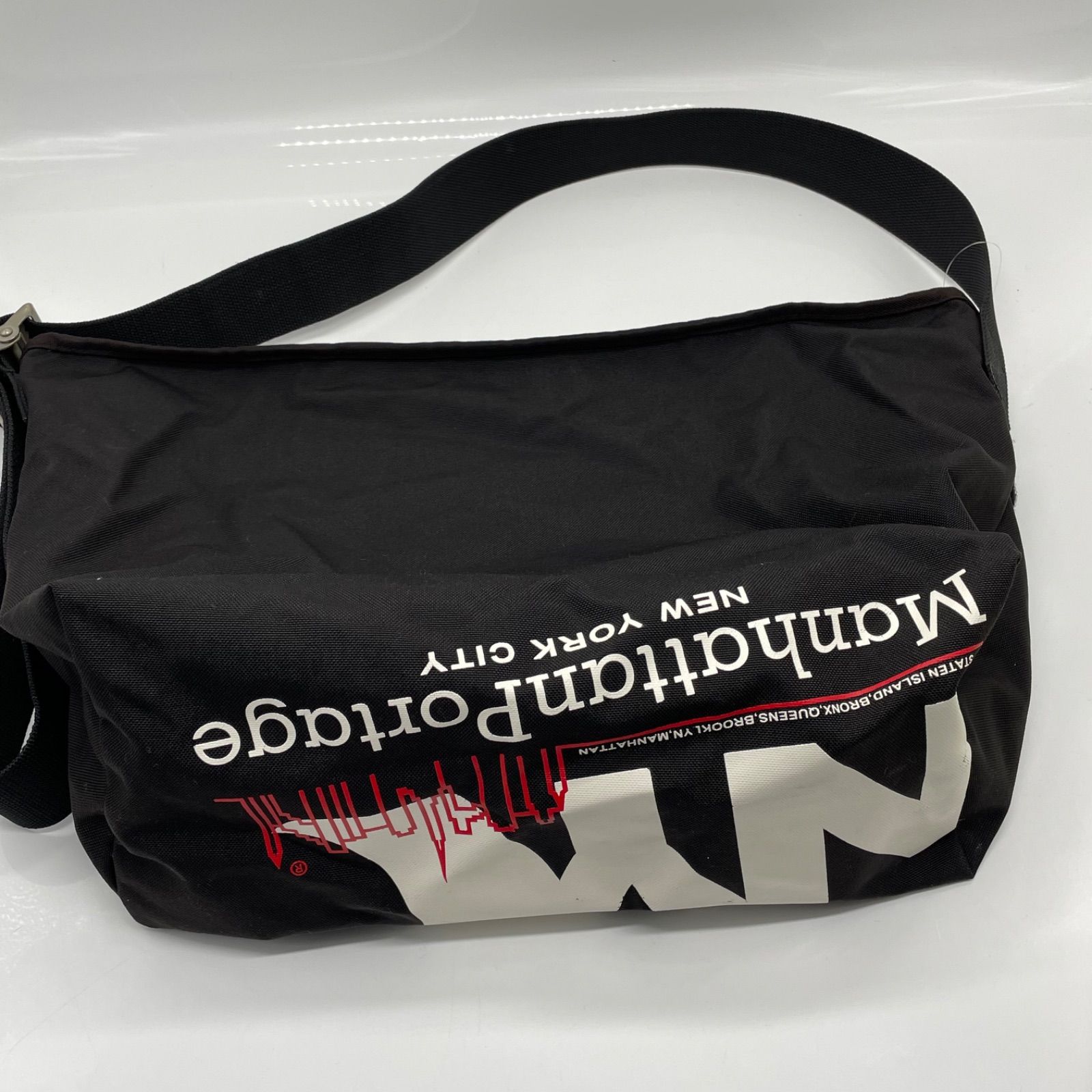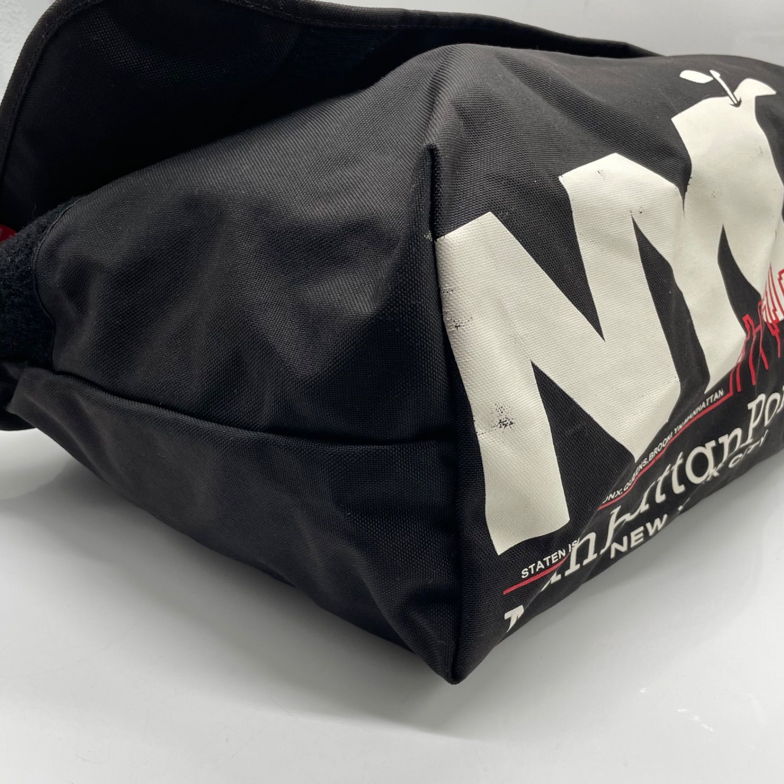 BN6869□マンハッタンポーテージ NYCロゴ メッセンジャーバッグ ブラック 大きめサイズ