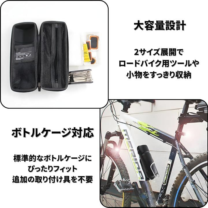 ロードバイク用ツールや小物をすっきり収納でき、ライド中の携帯に最適です。
