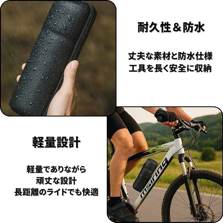 さらに防水仕様で雨や水しぶきから中の工具を守るため、天候を気にせずライドを楽しめます。