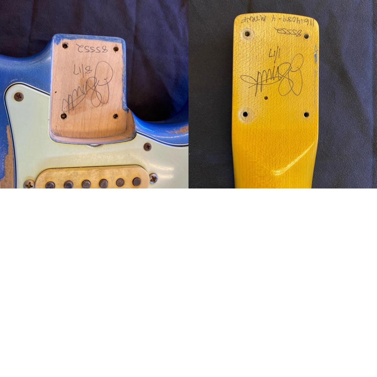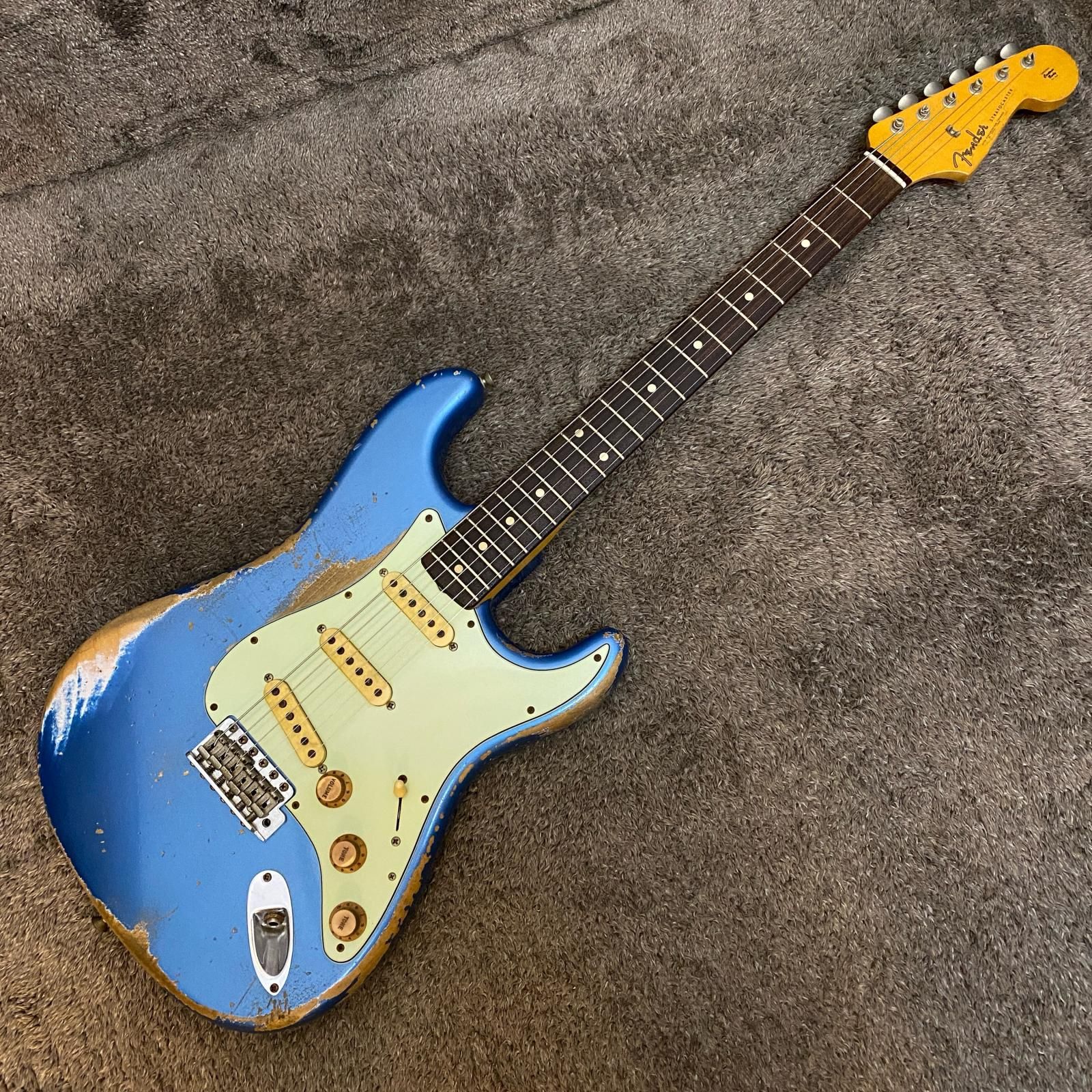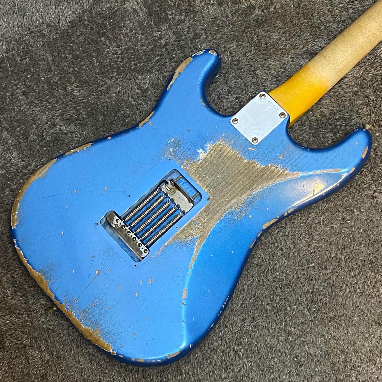 ‘50sを採用。レイクプラシッドブルーにヘビィレリックを施したクールな一本です。実際に手を取って感じていただきたいのですが、マスタービルダーならではの、細かな部分までこだわられた職人技にロマンを感じます。状態としましては、レリックモデルのため追加で付いたダメージは不明です。フレットは残り8~9割程と十分残っており、ネック状態も良好。トラスロッドも十分余裕があるため、楽器としての機能もバッチリ。コレクション、プレイヤーどちらにもおすすめの個体です。