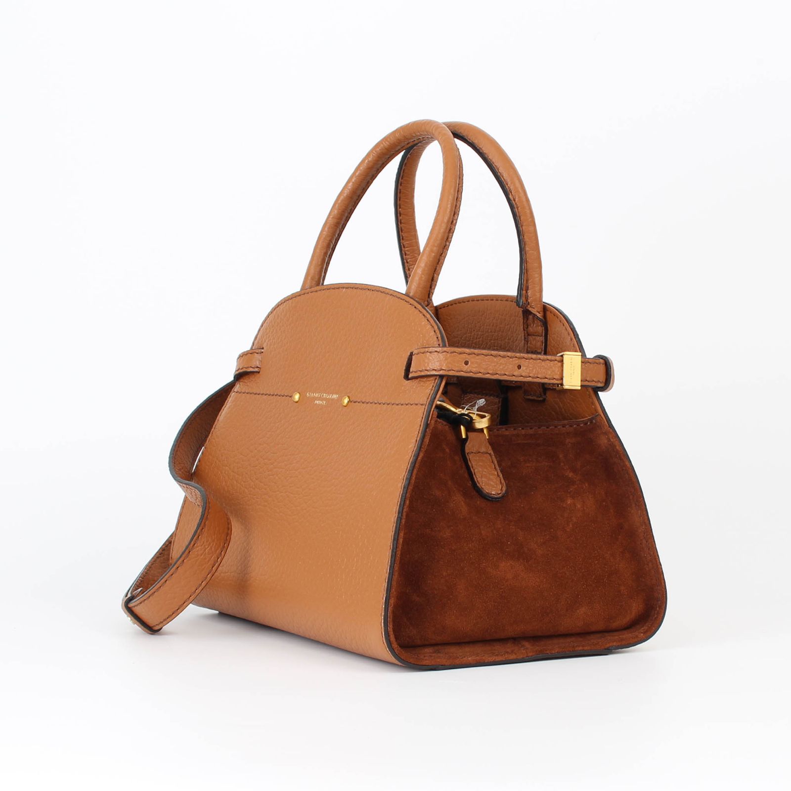 FARAH(ファラ)はサイドには同系色のスエードをあしらい、素材のコントラストが美しい一品です。トラペーズ型のシルエットに、ブランドを象徴するディテールを散りばめ、洗練されたデザインに仕上げました。外側にはストラップとメタルクラスプを配し、モダンで個性的なアクセントをプラス。レザー製のトップハンドル2本に加え、取り外し可能なショルダーストラップ付きで、クロスボディとしてもお使いいただけます。