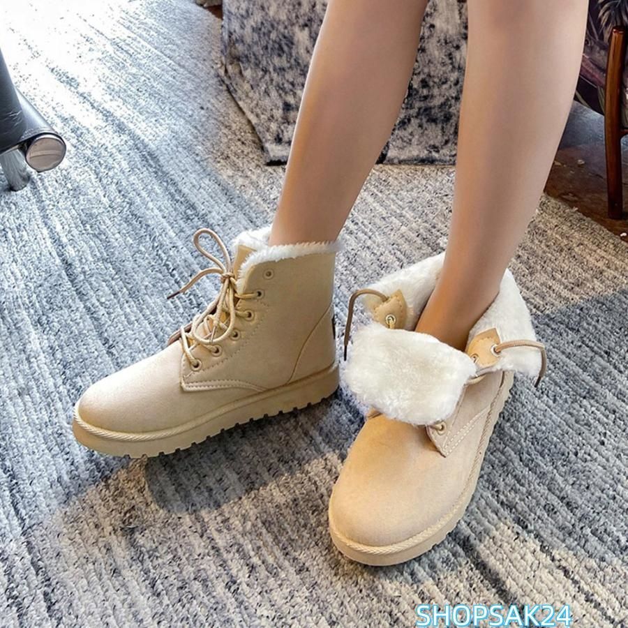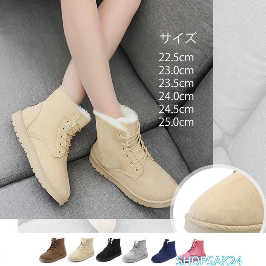 レディース フラットヒール 裏起毛ブーティ あったか もこもこ 靴 秋冬新作 ムートンシューズ フェイクムートン