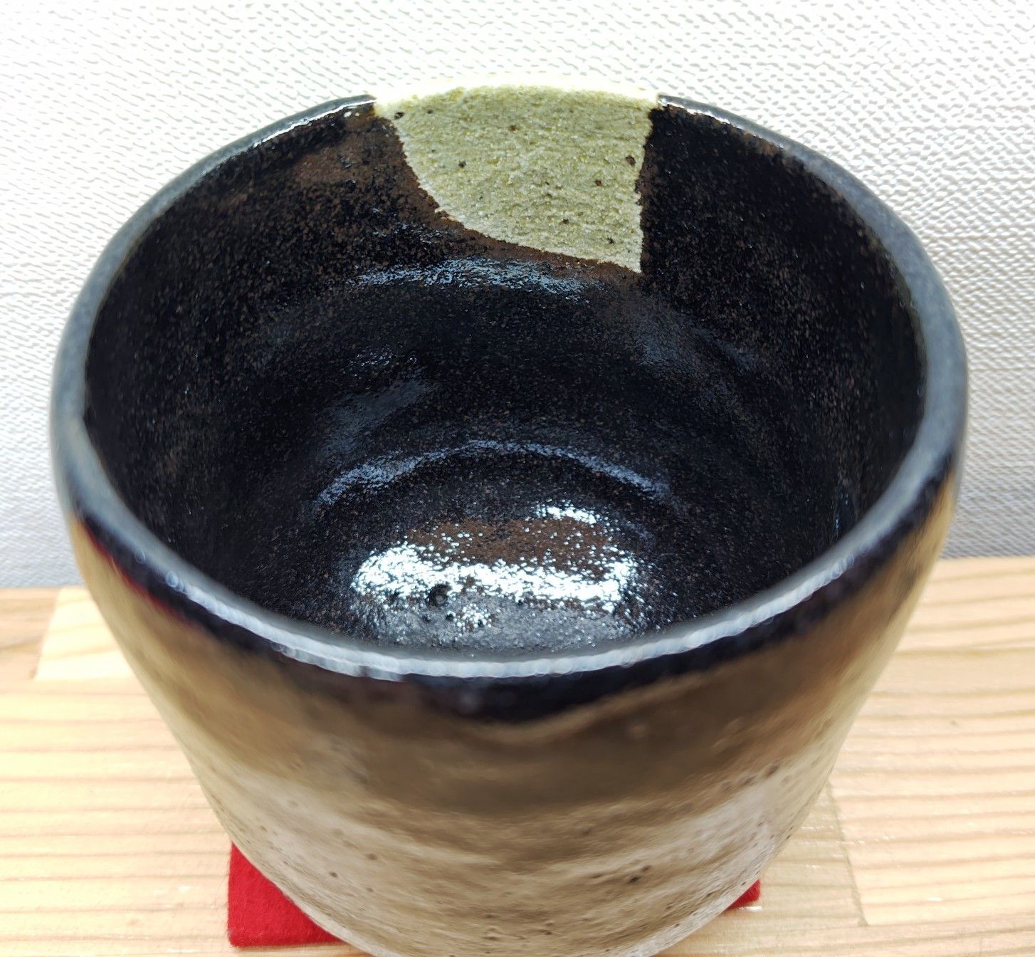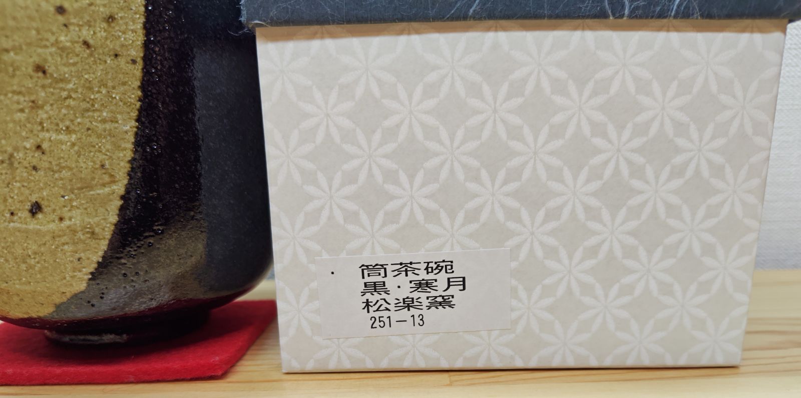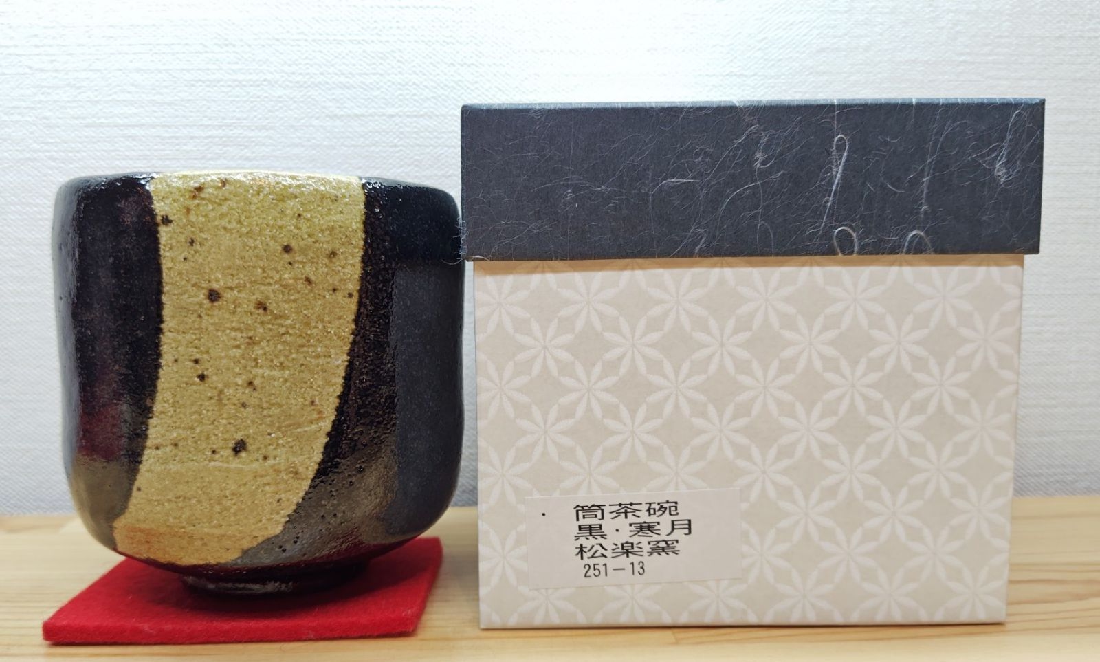 【逢絢亭・新品】茶道具 筒茶碗 楽焼 黒楽 寒月の図 松楽窯 紙箱入り