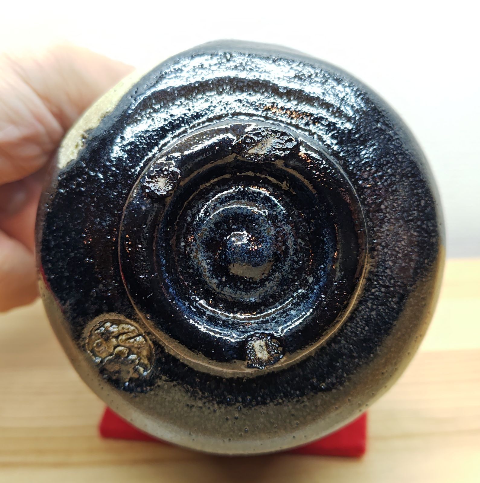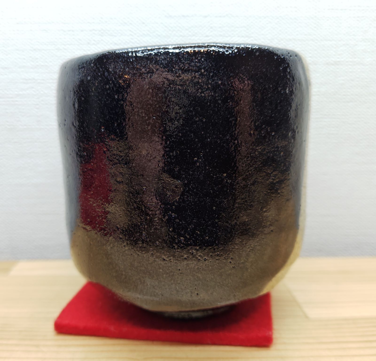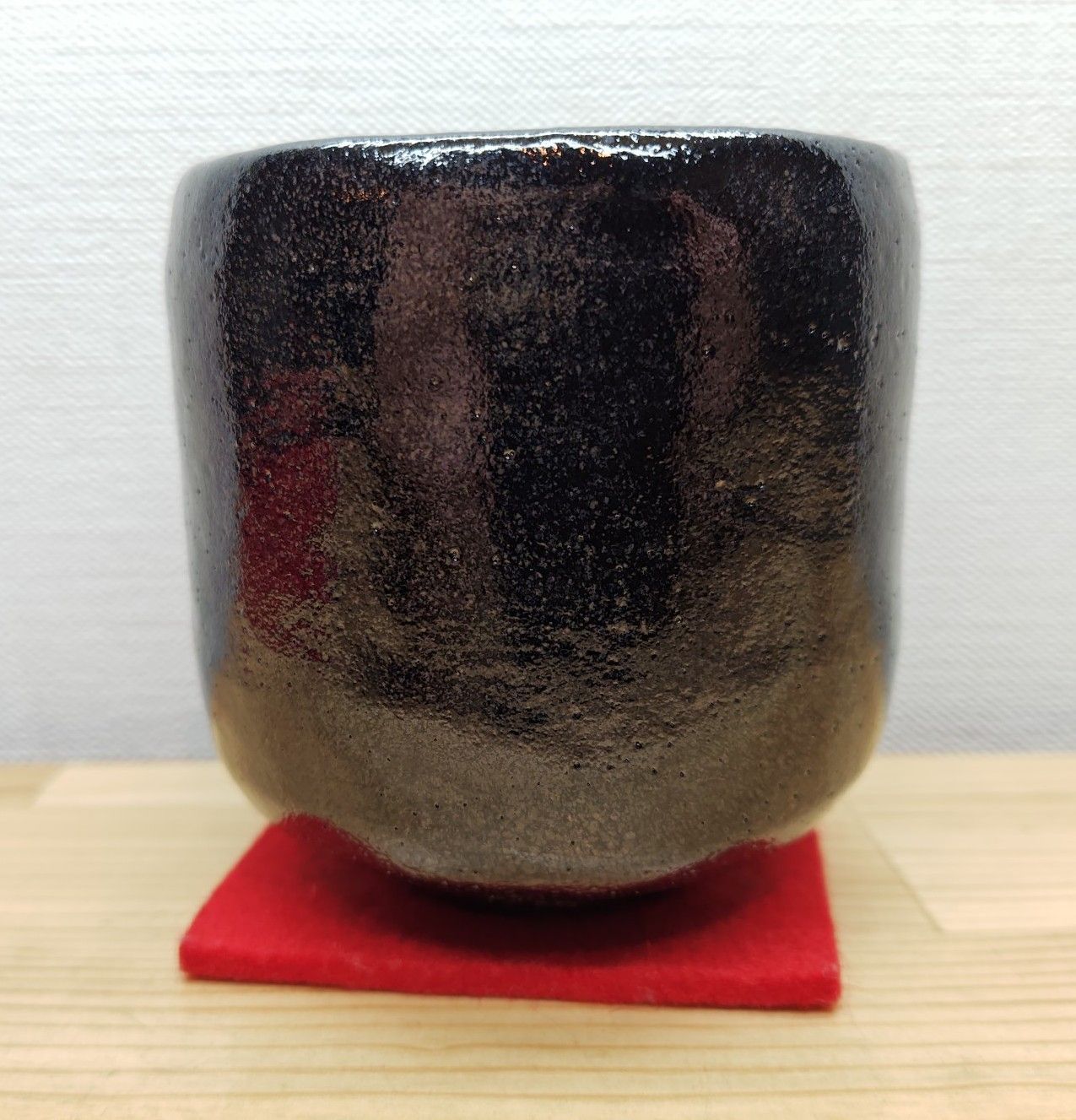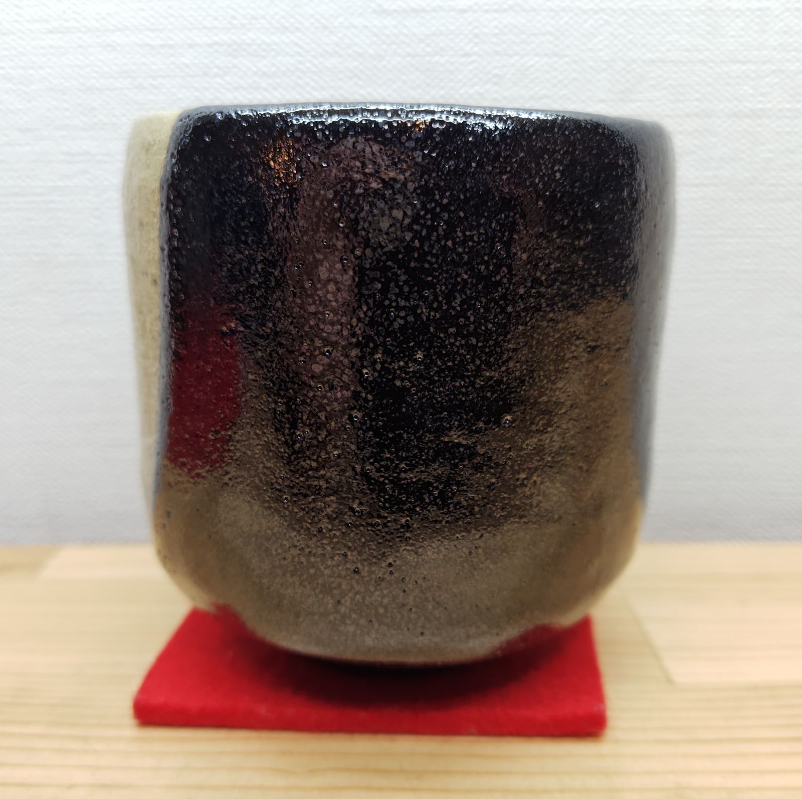 【逢絢亭・新品】茶道具 筒茶碗 楽焼 黒楽 寒月の図 松楽窯 紙箱入り