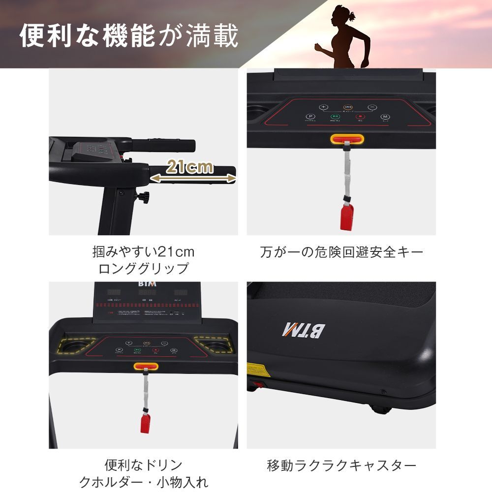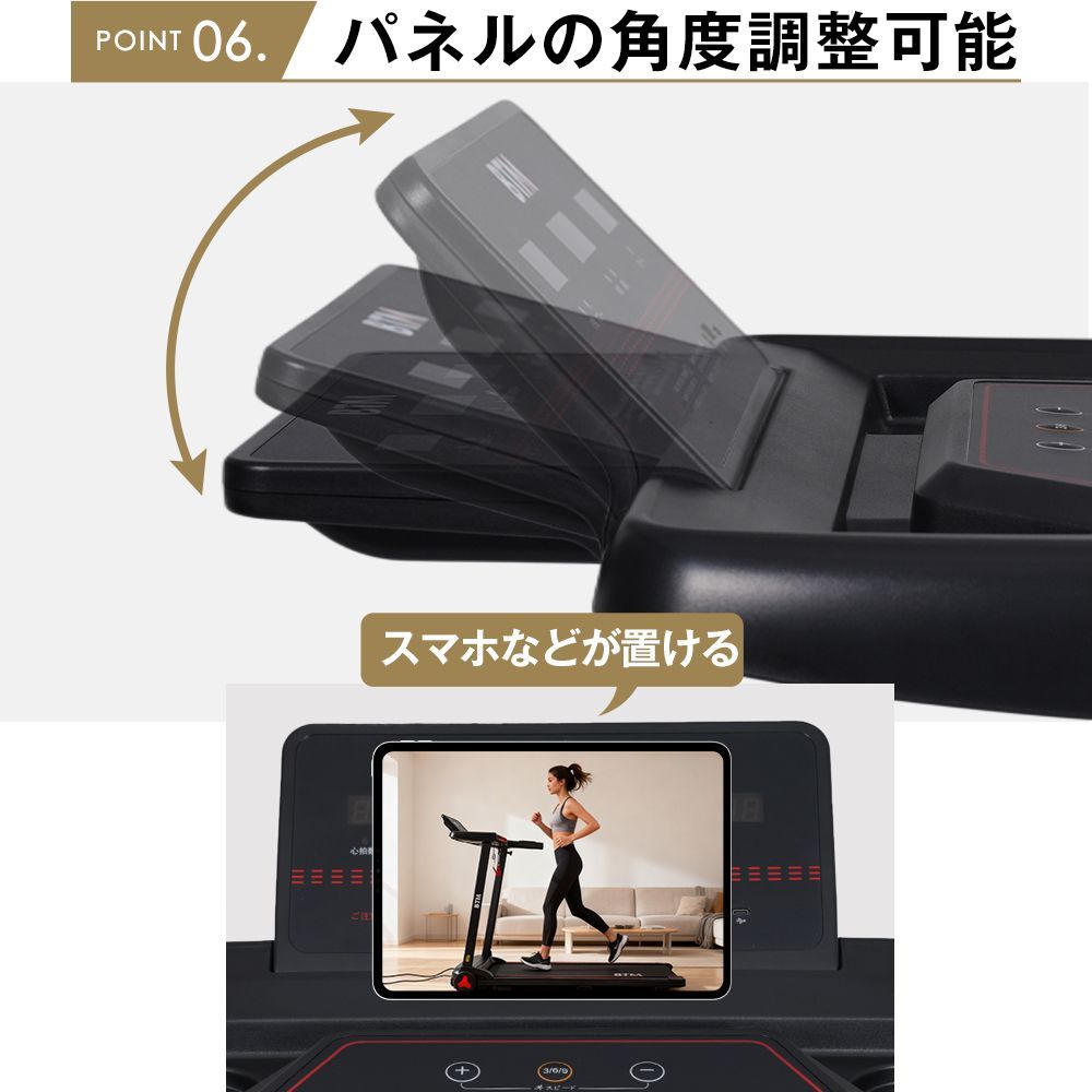 【パネルの角度調整可能】スマホなどが置ける。【41×106cmの広々走行面】歩幅を気にせずのびのび走れる