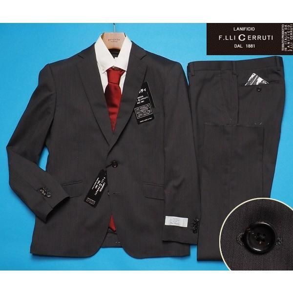 商品名:新品10.8万円 大手百貨店扱い 10マンス『CERRUTI チェルッティ イタリア製生地』ウール100% シャドーストライプ スーツAB8灰(H) 1513271