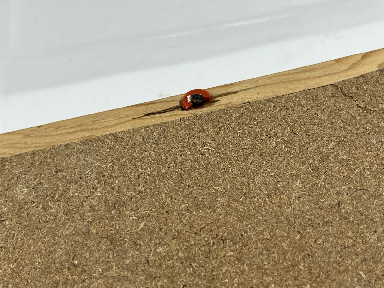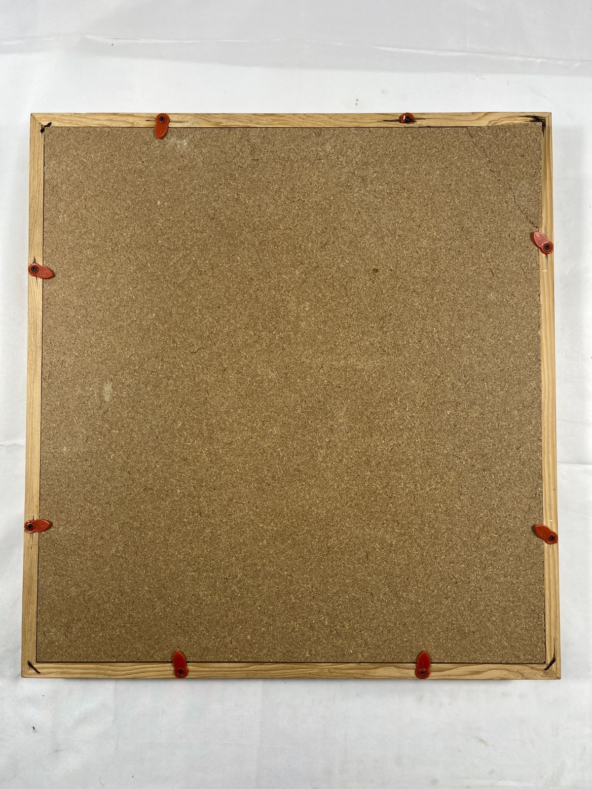 長期保管品および使用品となりますので、商品に傷や汚れ、サビ、内部の枠の歪み、爪の欠け、裏面のコルクの折れ曲り等がみられます。裏面コルクが折れ曲がっているため、ちぎれかけている状態となります。