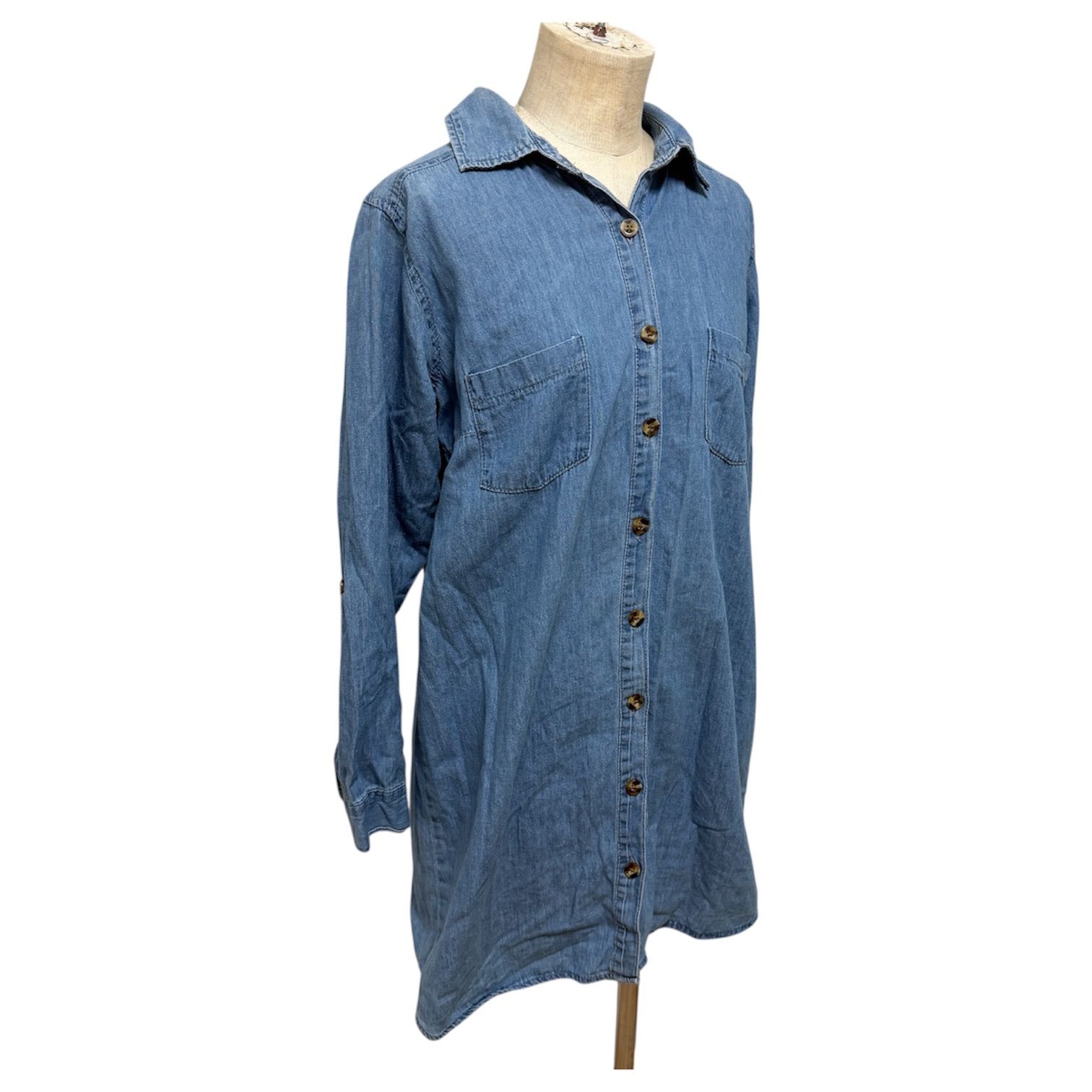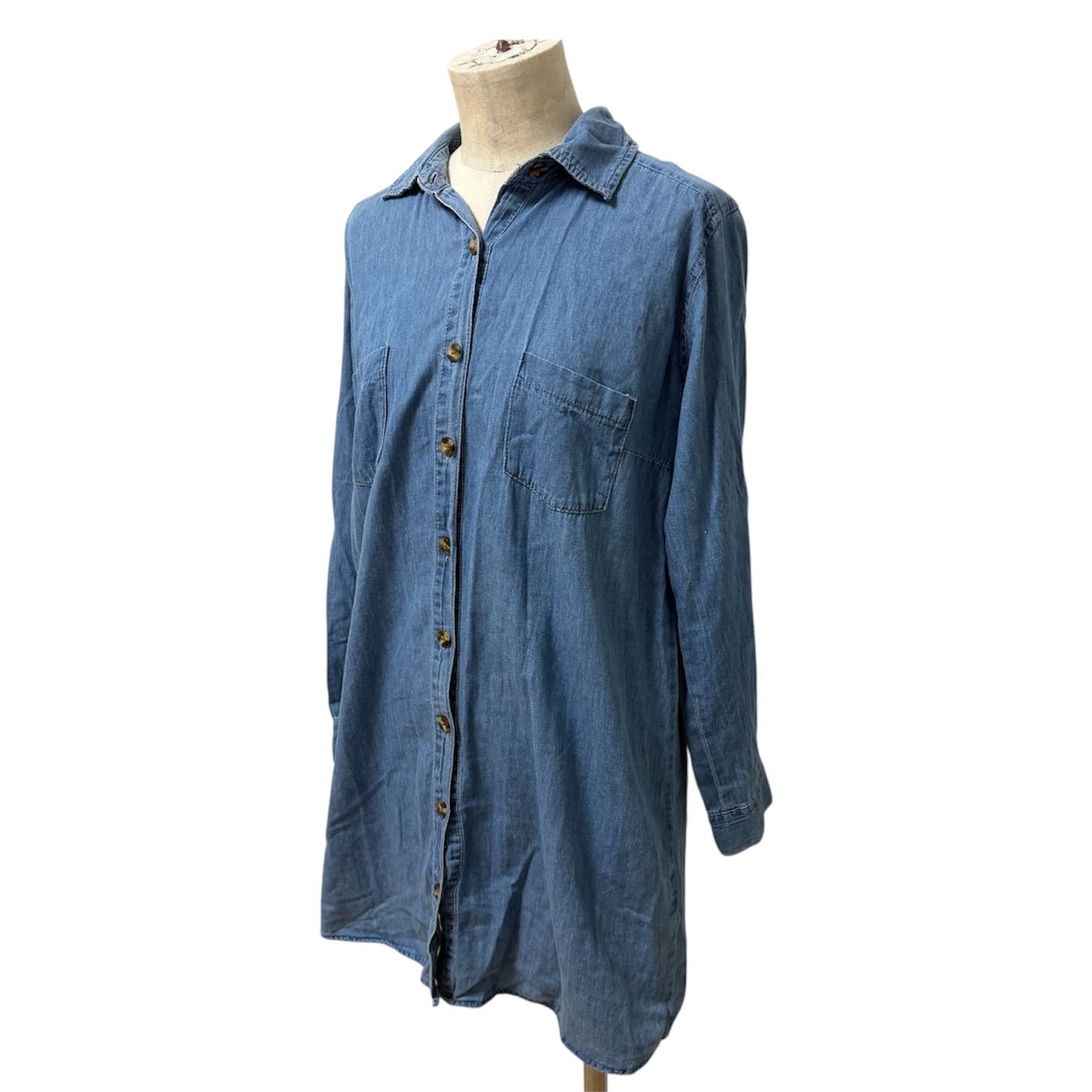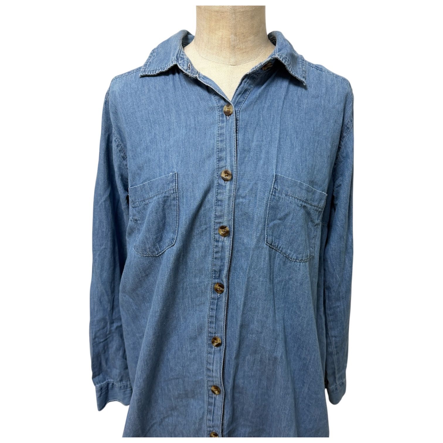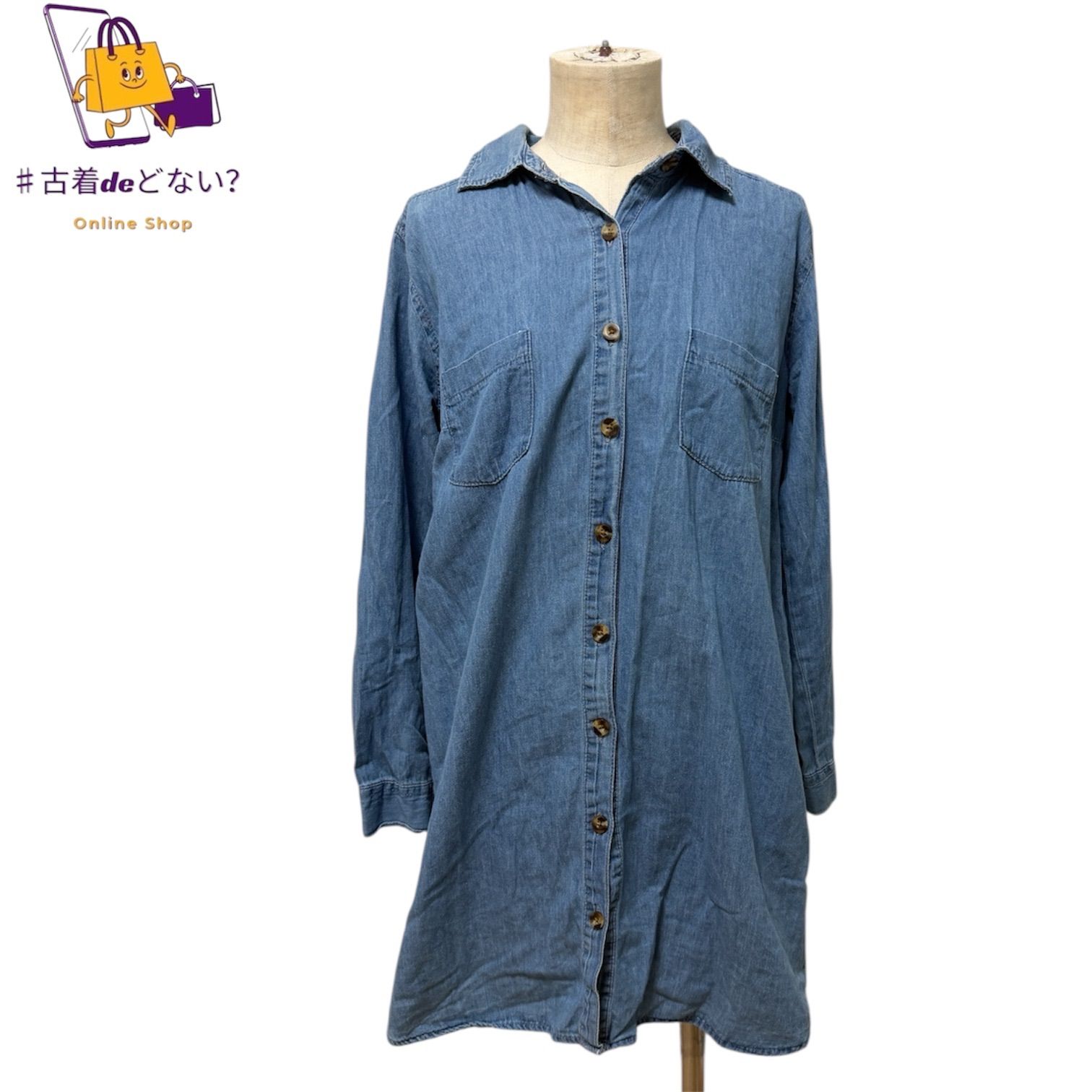 #古着deどない #デニムシャツ#シャツ#デニム#ロングシャツ#長袖ワンピース #カジュアル #古着女子 #ママコーデ #オーバーサイズ #ビッグシルエット #コットン100 #Mサイズ #インディゴブルー #着回し抜群 #春コーデ #秋コーデ #冬コーデ #