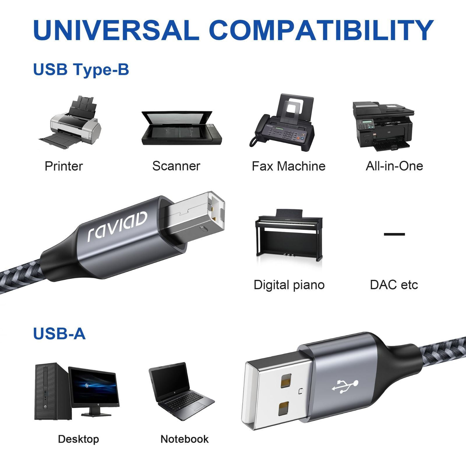 【幅広い互換性】RAVIAD プリンター usbケーブルは、スキャナーやプリンターで幅広く使用できます。HP、ブラザー、レックスマーク、キヤノン、エプソン、デル、ゼロックス、サムソン、サーバー、ハードドライブ、ピアノ、およびUSBをサポートするその他のデバイスに対応します。