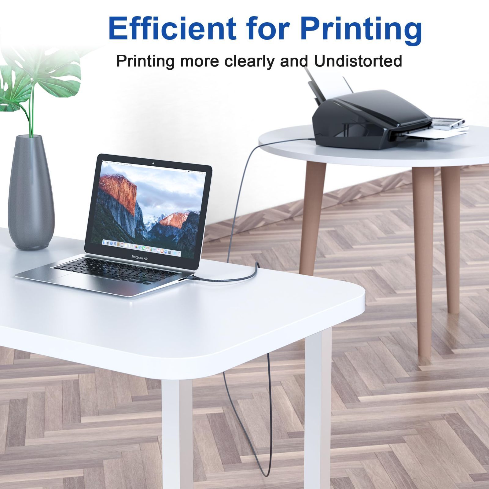 【高速データ転送】プリンター ケーブルはデータ伝送スピードは最大480Mbpsに達する可能性があり、USB2.0規格をサポートします。USBプリンターケーブルは、フルスピードUSB 1.1(12 Mbps)および低速USB 1.0(1.5 Mbps)と下位互換性があります。他の従来のプリンターケーブルと比較して、このUSBケーブルは、より安定したデータ転送とより効率的な作業方法を提供します。