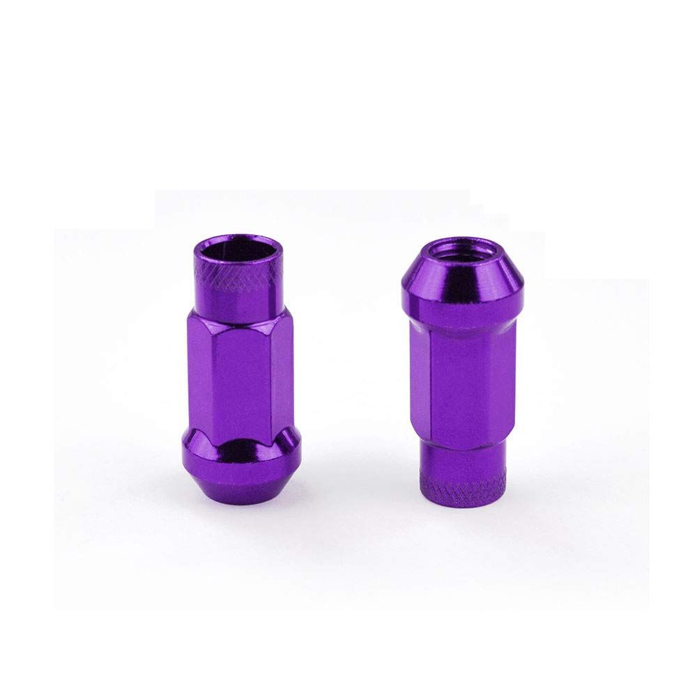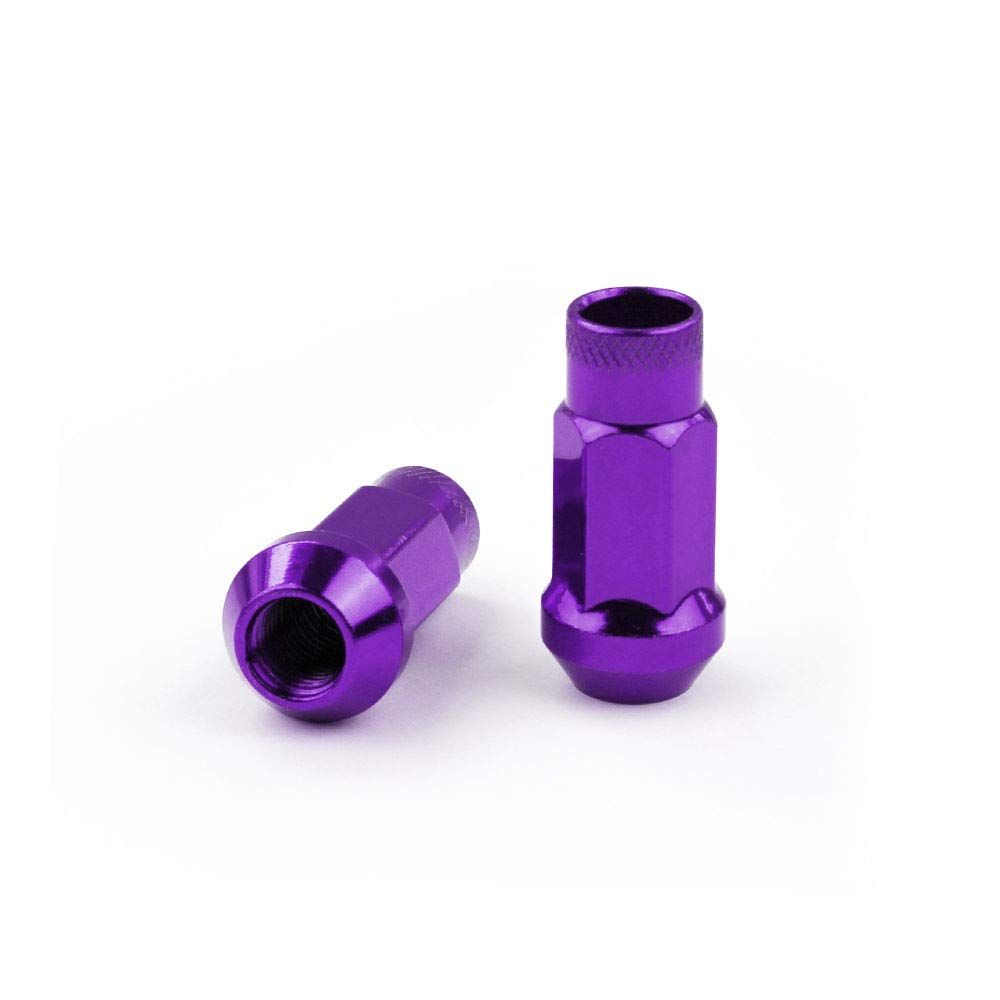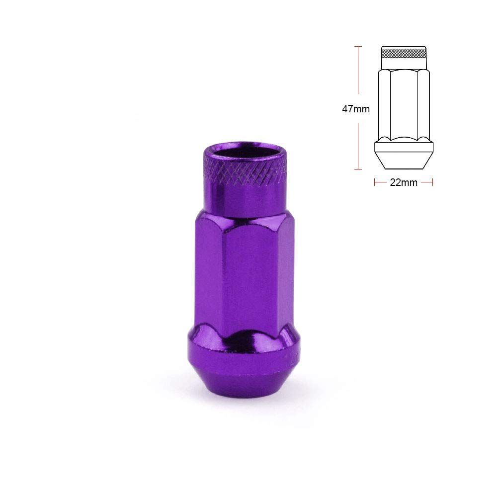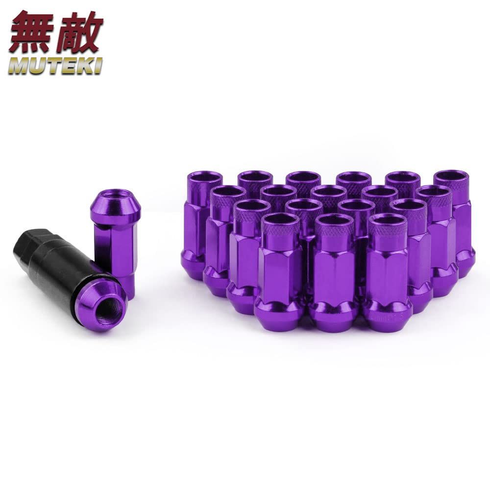 MUTEKI ホイールナット スチール製 48mm 貫通タイプ ロング ラグナット レーシングナット 専用ソケット付き テーパー 20個セット(M12 x P1.25パープル)