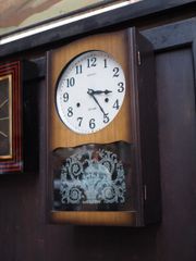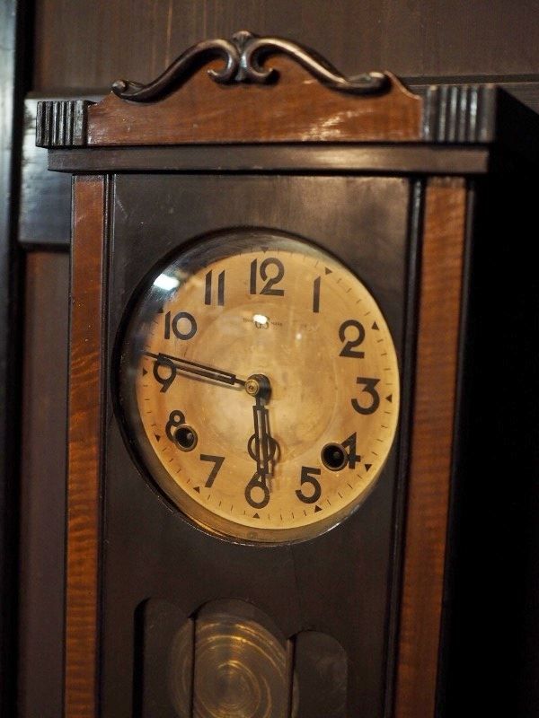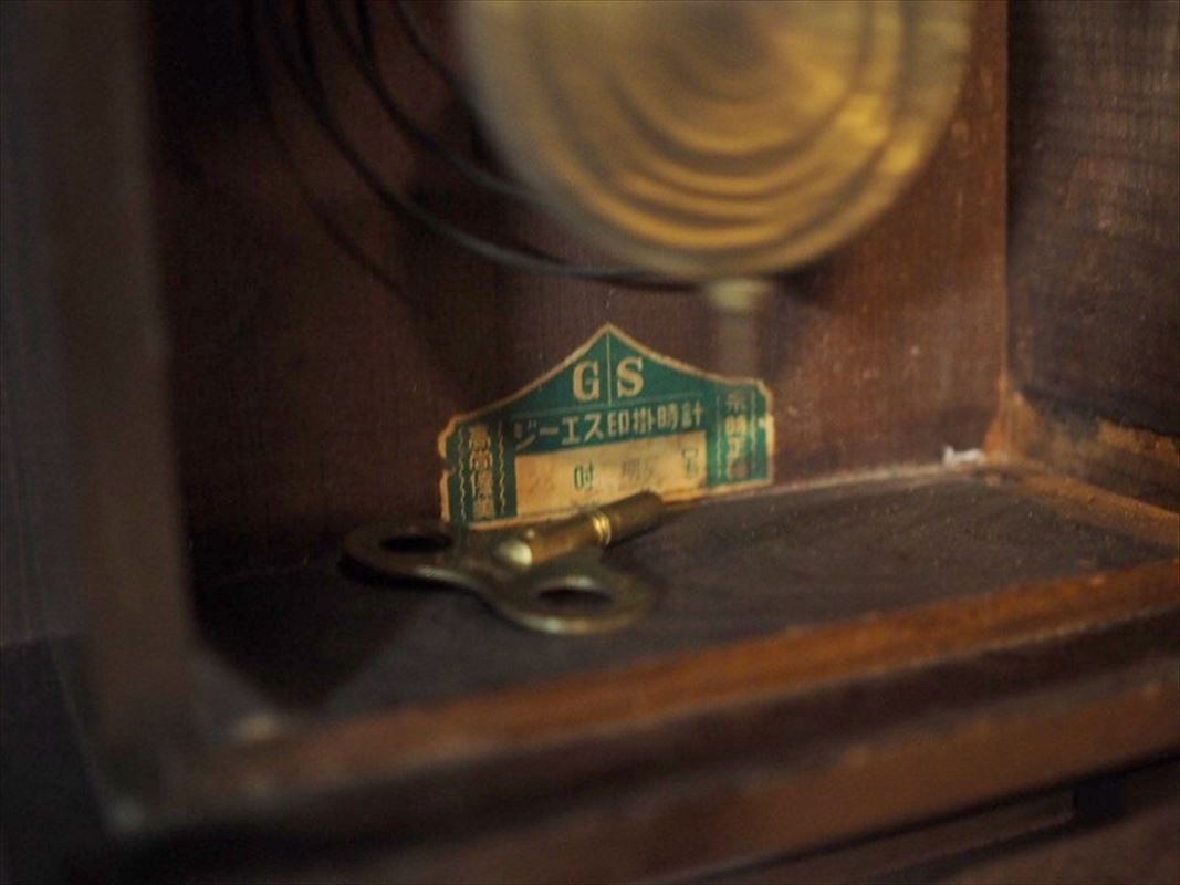 GS アンティーク柱時計 昭和前期 動作品ですが、水平に設置してください。現代の時計とは違い誤差が出ます。数日でゼンマイを巻いてください。古い柱時計は、主に明治から昭和にかけて一般家庭に普及した、壁や柱に掛けて使うぜんまい式の時計を指します。時刻を知らせるために1時間ごとに「ボンボン」と音を鳴らすことから「ボンボン時計」とも呼ばれていました。ゼンマイを巻く必要があり、振り子や機械仕掛けの歯車で時を刻むのが特徴です