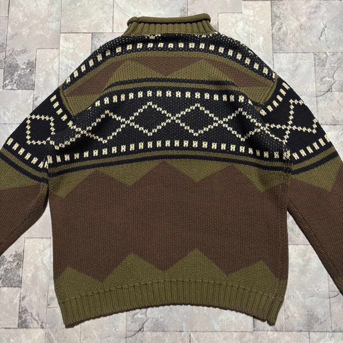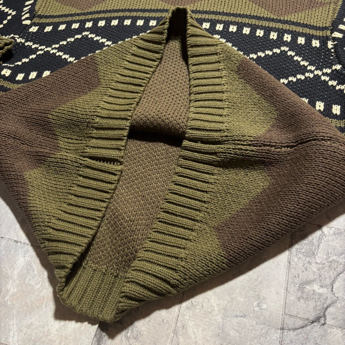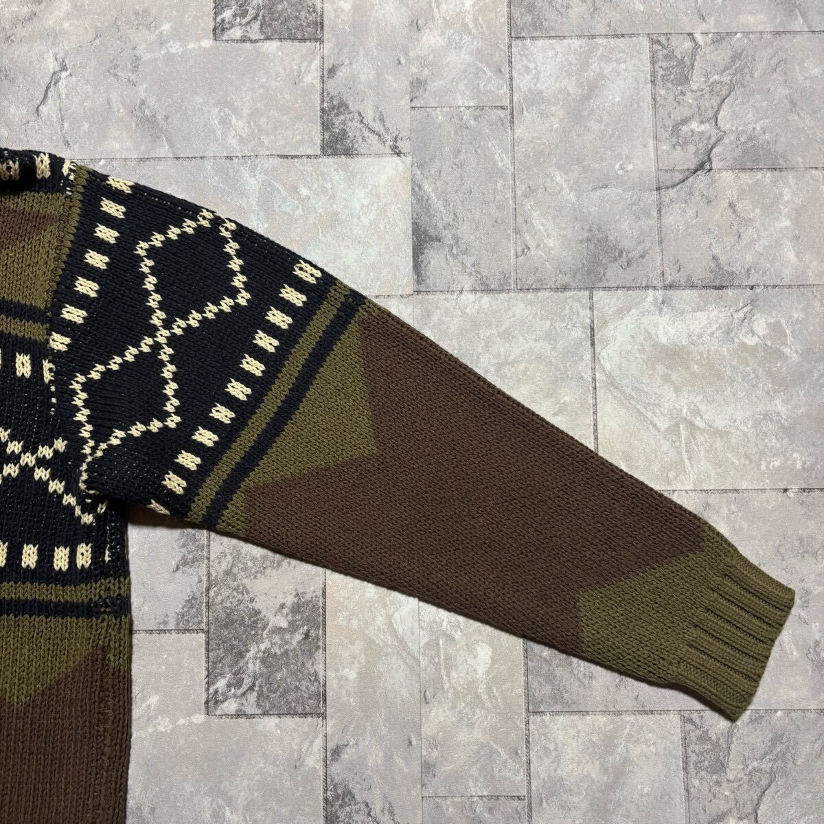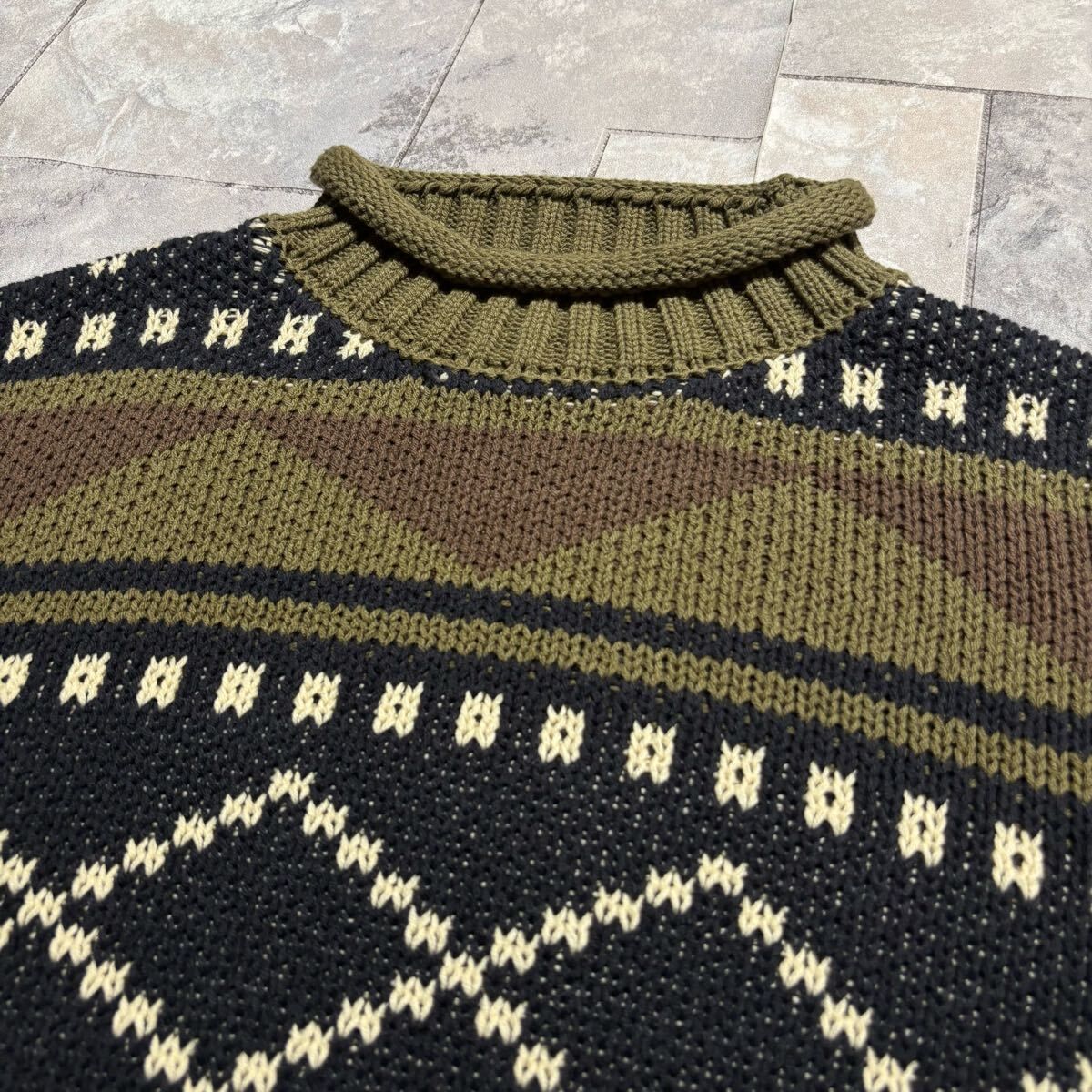 modem design モデムデザイン ニット セーター 長袖 ビッグシルエット 総柄 幾何学 カーキ サイズ2XL相当 玉FS1765