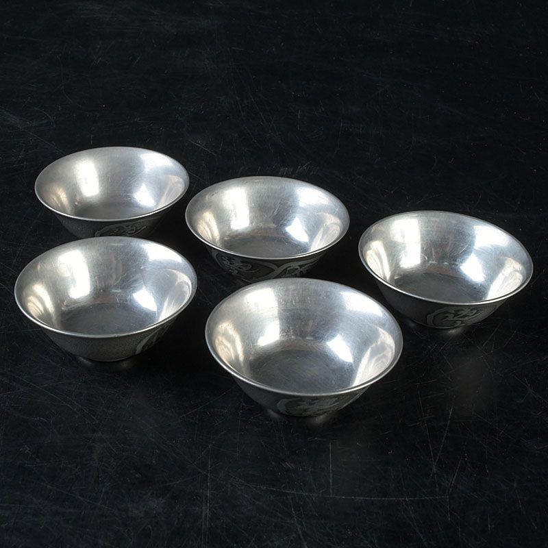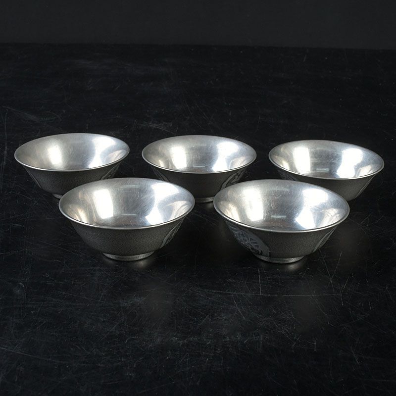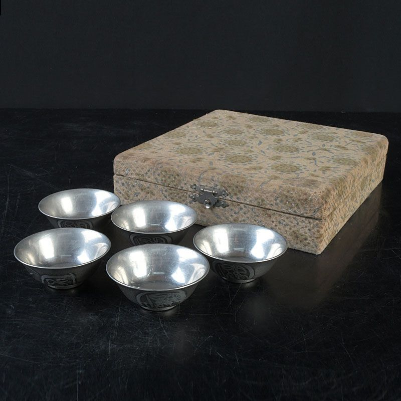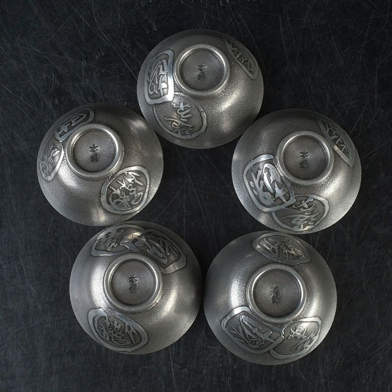本錫製 ぐい呑 盃 五客 箱付 C S385