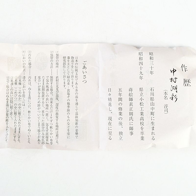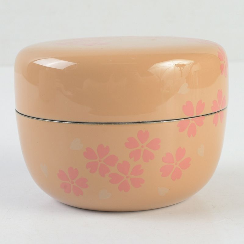 茶道具 輪島塗 中村湖彩作 白漆塗 桜蒔絵 平棗 共箱 V S394