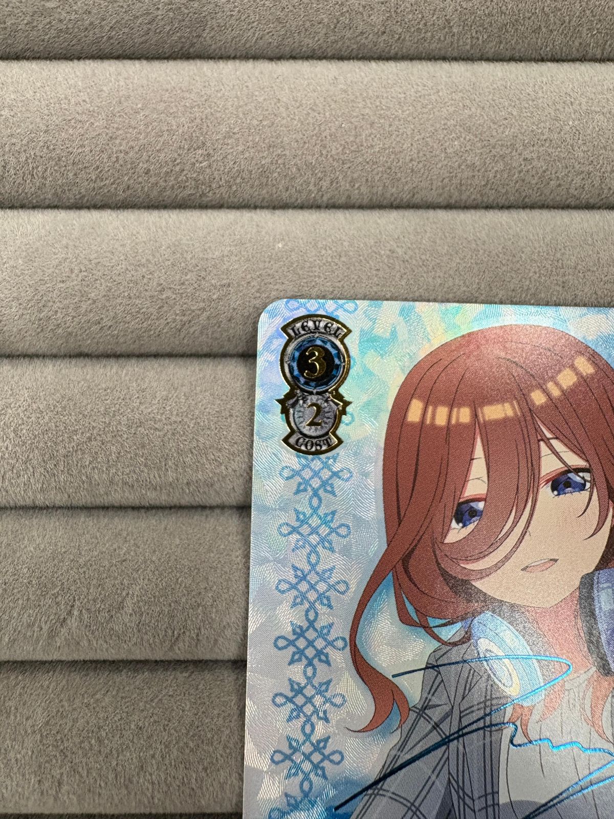 中野三玖の美麗イラストと金箔サインが特徴の人気コレクションカードです。