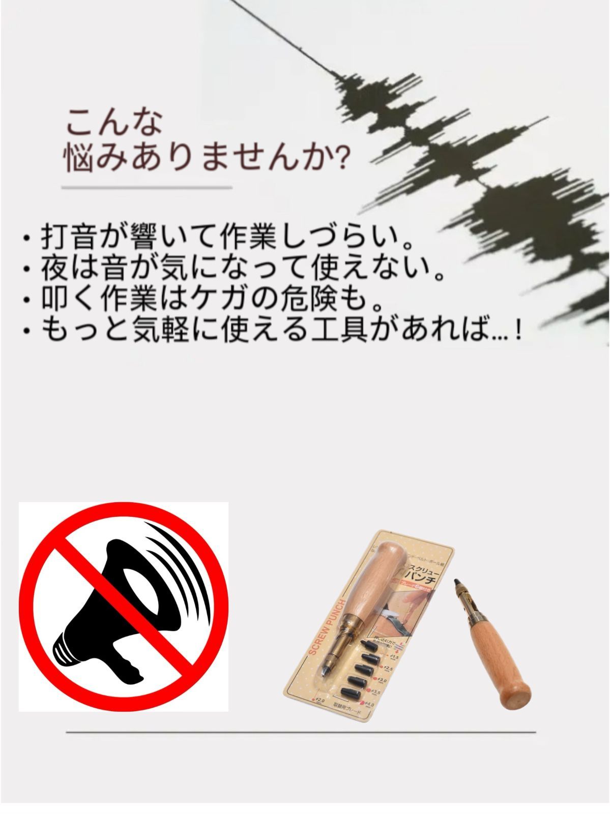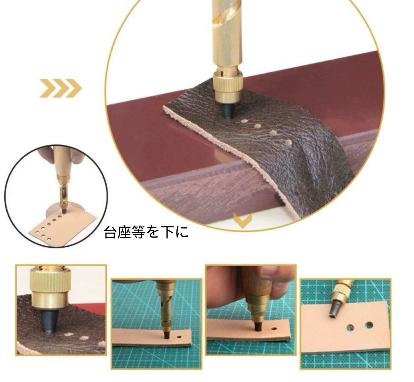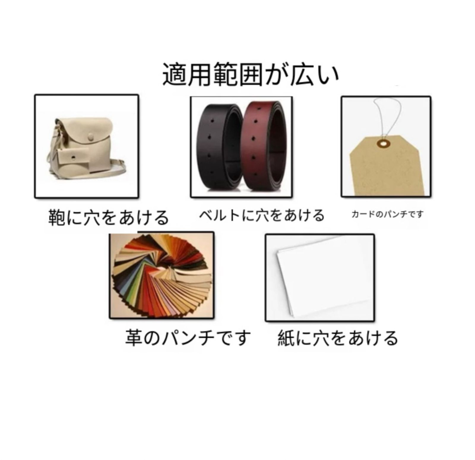 【スクリュー式穴開けパンチ】 握りやすいデザイン、温かみのある無垢材、回転式で静かに打音なく開けられる便利で安心な穴あけパンチです。 ベルトを穴開ける時に、力があまり使わなく、女性でも気楽に使用できる便利グッズです。 【押すと回るスクリュー】 穴をあけたい場所に当てて、上からおさえるとスクリュー式に回転して穴をあけられる仕組みとなっています。上からハンマーでたたいたりするものと違い静かに開けることができ、環境を気にせず使用できます。穴寸法は6種類あります。6つの丸型穴(1.5mm、2mm、2.5mm、3mm、3.5mm、4mm)です。 【使用範囲が幅広い】 革パン革製品、布製品、紙、ベルト、レザークラフト、時計ストラップ、ダンボール、ゴム、ビニール、プラスチック、裁縫、靴、バッグ、鞄、キャンバス、洋服、ギフトカード、ゴム板、段ボールカード、硬質PVCや裁縫に大活躍です。家庭でも工場でも事務室でも適用です。(ものによっては開けにくいものもございますので、ご了承ください。) ※日本語取扱説明書、撮影用小物類などは付属しておりません。 ※簡易包装でのお届けとなります。 ※モニターにより色合いが若干違いが生じる場合がございます。 ※デザインは入荷時期により若干変化する場合がございます ※海外製造品のため、多少の匂い軽微な傷や汚れ、個体差等ある場合がございます。 ※商品の使用により生じた如何なる損害・被害も弊社では一切の 責任を負いかねますので予めご了承ください。 ※発送方法について:お届け先、個数によって配送情報に記載の配送業者とは異なる場合がございます。日本郵便、佐川急便、またはセイノーエクスプレス(大型商品)でお届けいたします。なお、配送業者はお選びいただけませんので、ご了承ください。
