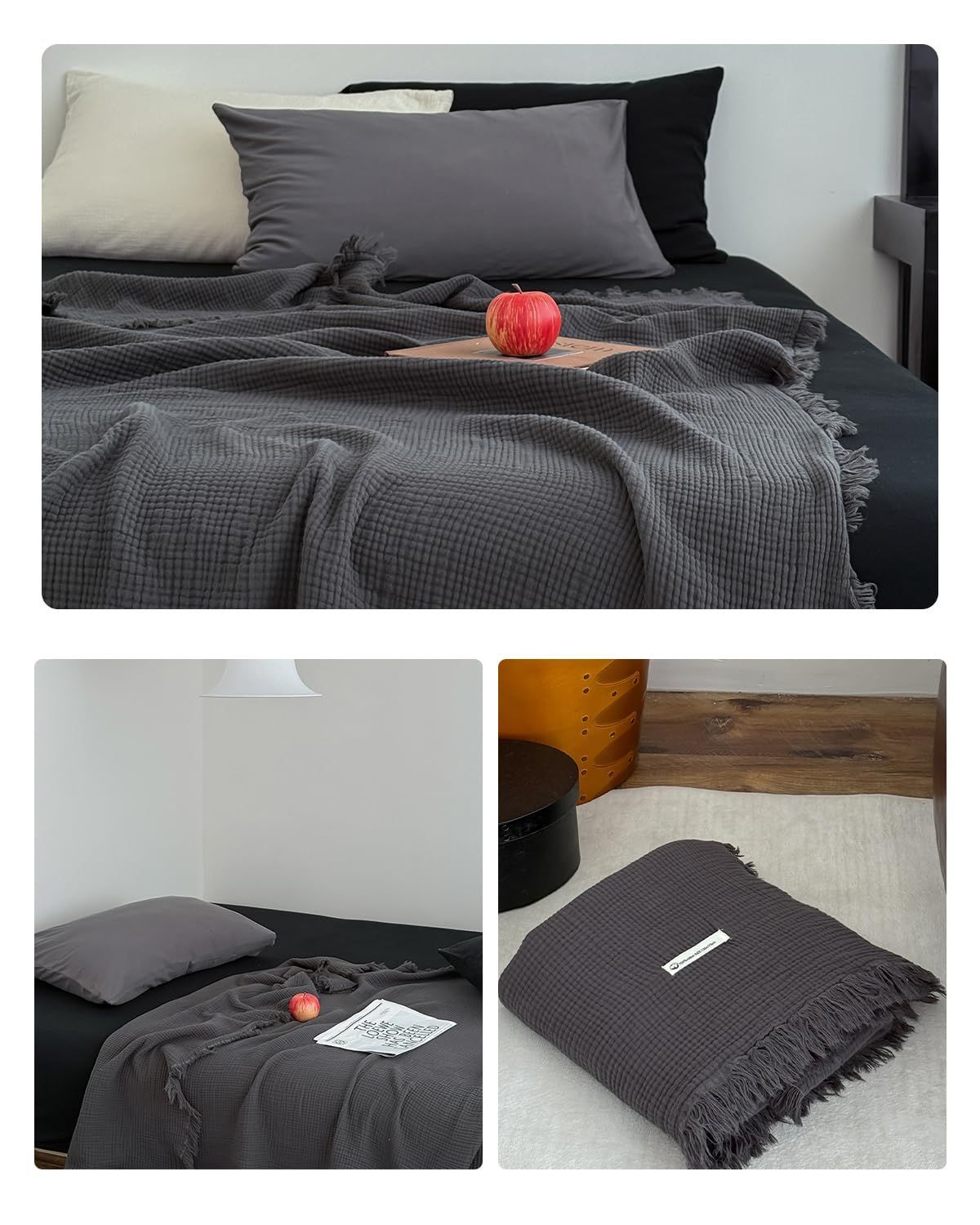 ガーゼケット タオルケット シングル 夏用 棉100% 4重ガーゼ ナチュラルコットン ガーゼブランケット 肌掛け 吸湿速乾 通気 軽量 柔らかい 肌触り良い 丸洗い 冷房対策 (ダークグレー 130*170cm)