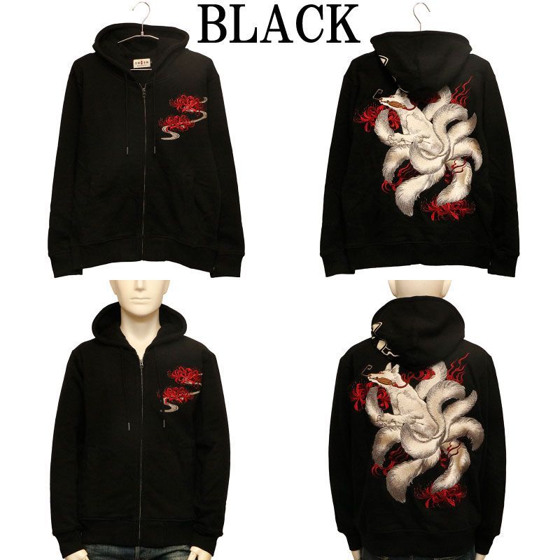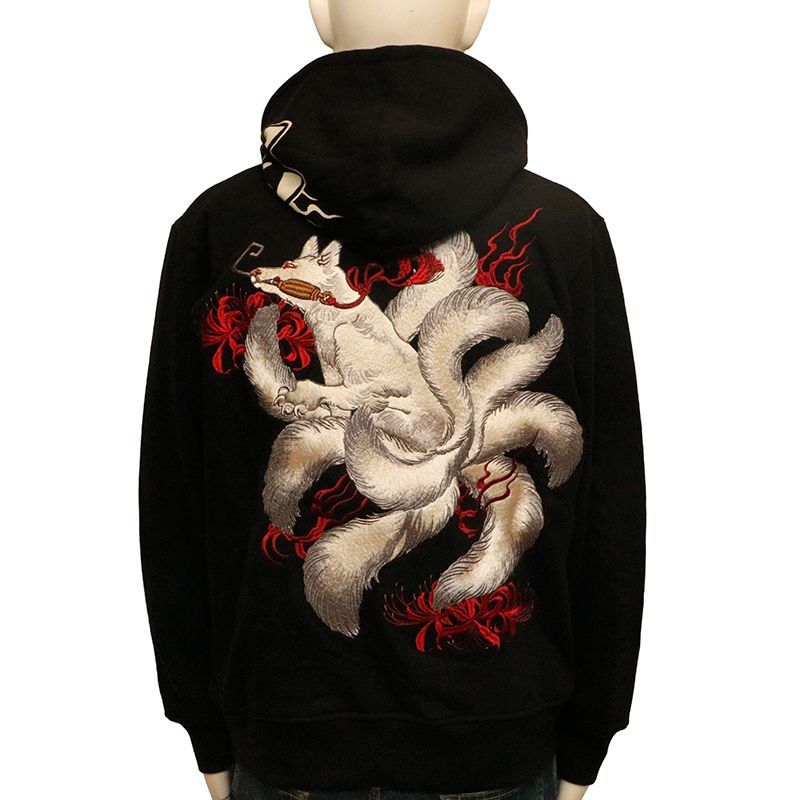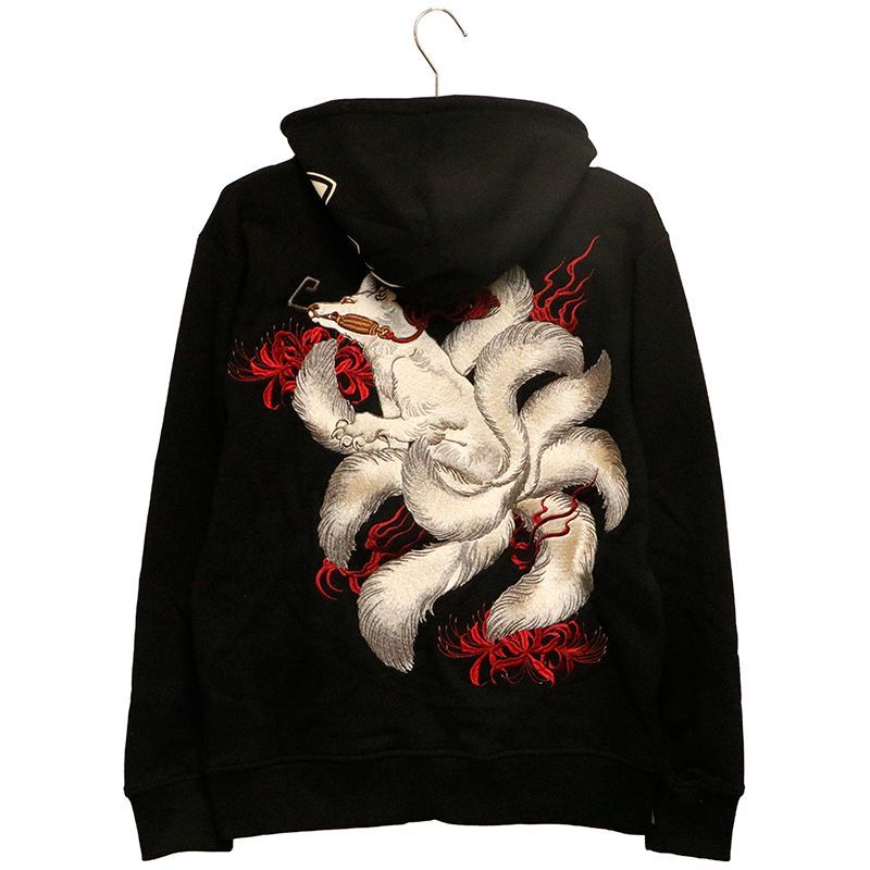 スカジャンでも人気の「九尾の狐」を落とし込んだ和柄のZIP UPパーカー。