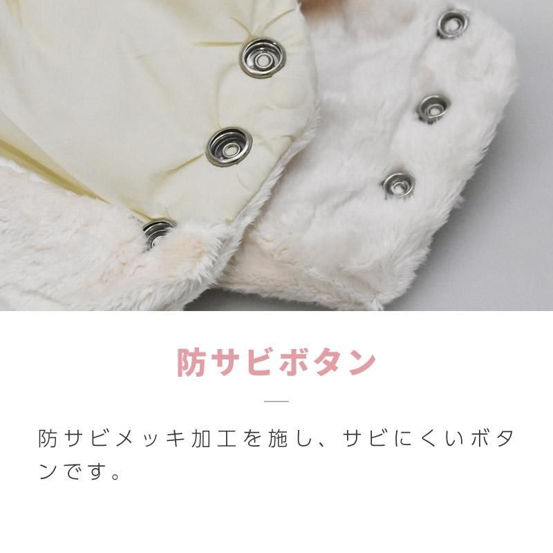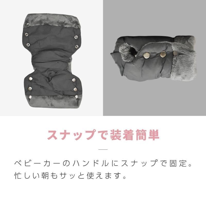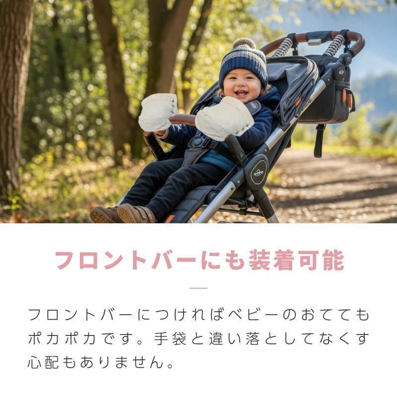 フロントバーにつければベビーのおててもポカポカです。手袋と違い落としてなくす心配もありません。